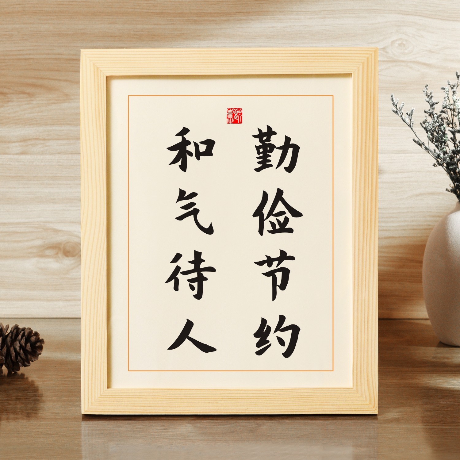 📚 勤俭节约和气待人书法摆件励志桌面实木相框办公室摆台座右铭字画