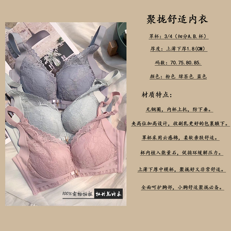 📚 云感棉小胸聚拢无钢圈调整型内衣女无痕柔软性感能量石收副乳文胸