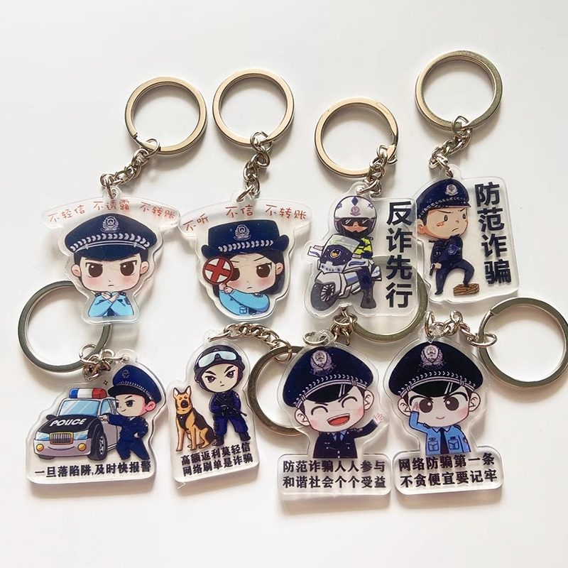 📚 卡通警察蜀黍亚克力钥匙扣防诈骗反诈宣传品警察节小礼品周边文创