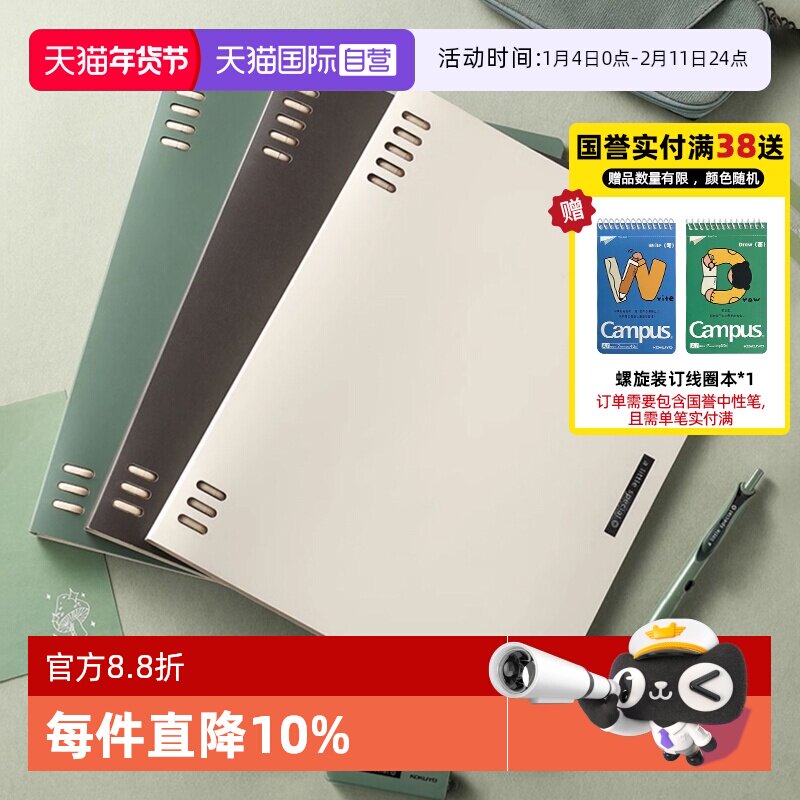 39¥ HU926 1LHXUQuhLrm¥ https://m.tb.cn/h.7u2nwJt 【自营】日本kokuyo国誉迪士尼联名一米新纯系列活页本Campus紧凑型八孔可换替芯拆卸本子A5不硌手纸B5笔记本 --------------------- 【原售价】32.5元 【现售价】25.5元。
