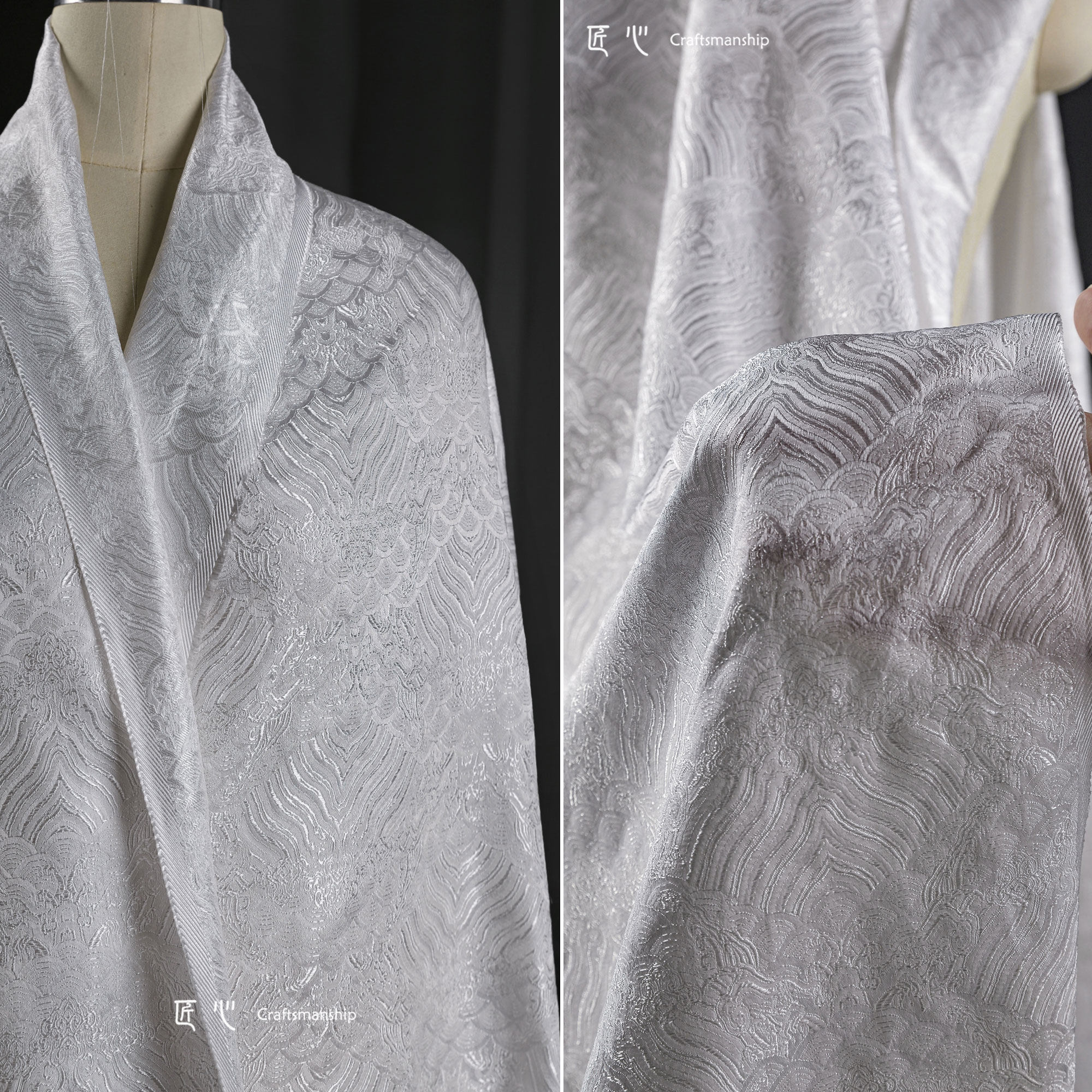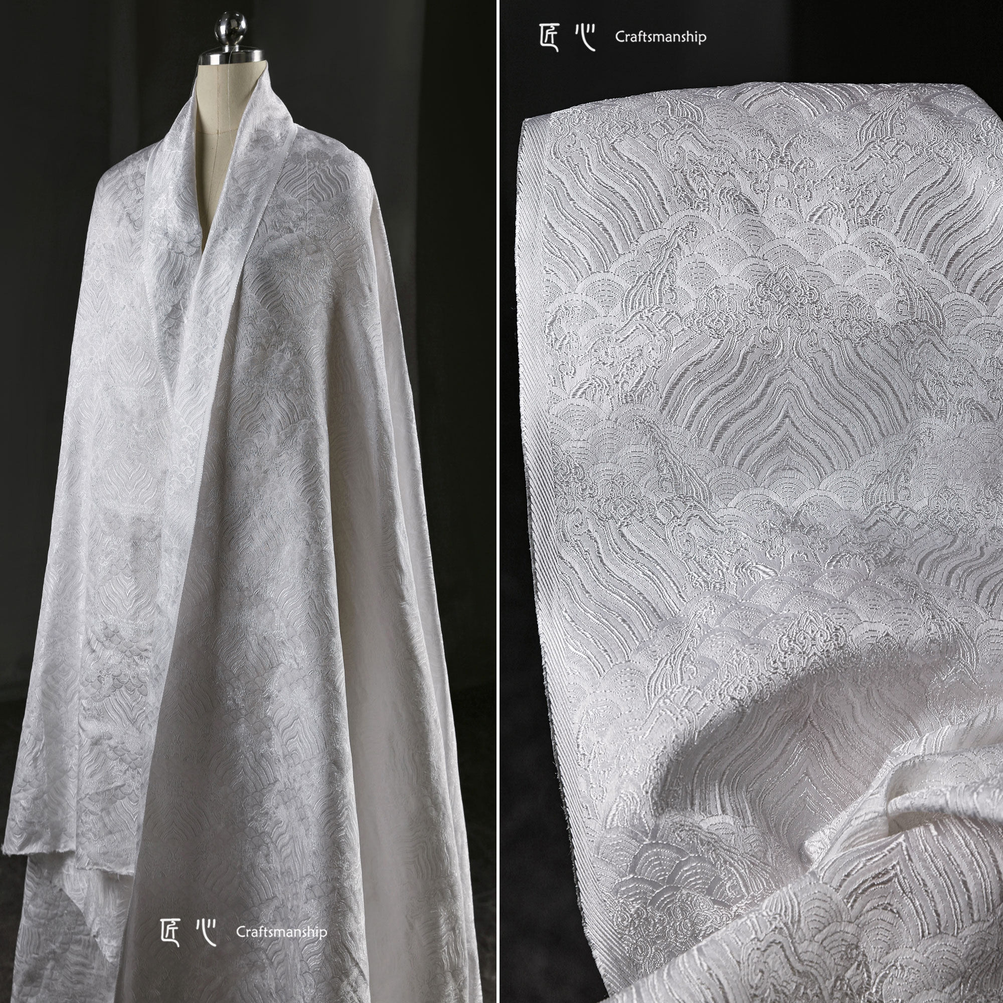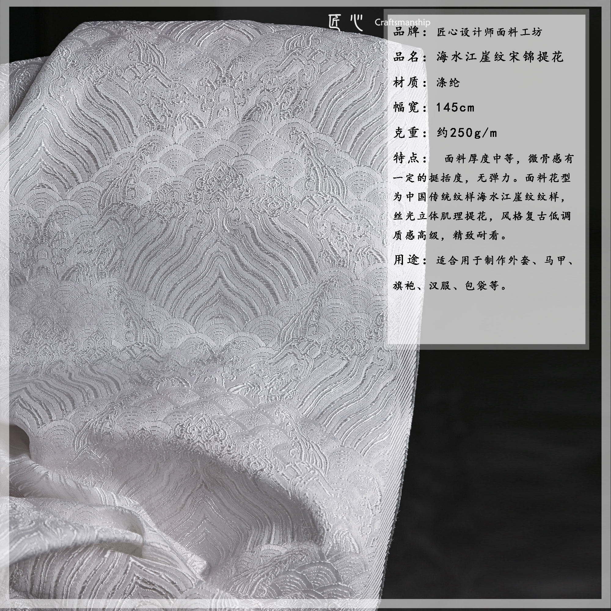 📚 鳞片海水江崖纹新中式国风复古提花布 立体肌理diy汉服装设计面料