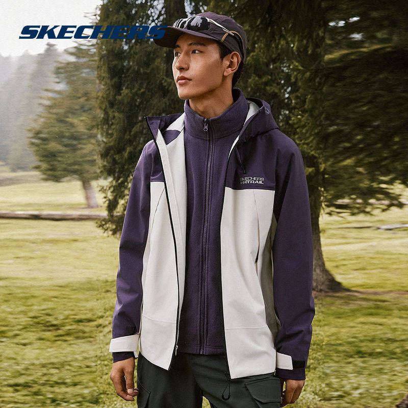 📚 斯凯奇魔方系列冬新款男款三合一抓绒连帽防泼水外套夹克P425M136