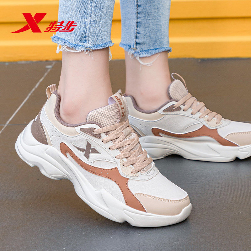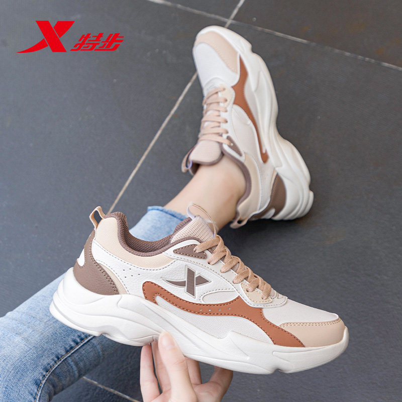 #特步跑步鞋 #女款皮面 #冬季休闲老爹鞋 #官方旗舰正品 #运动鞋 #优惠活动 #学生党福利