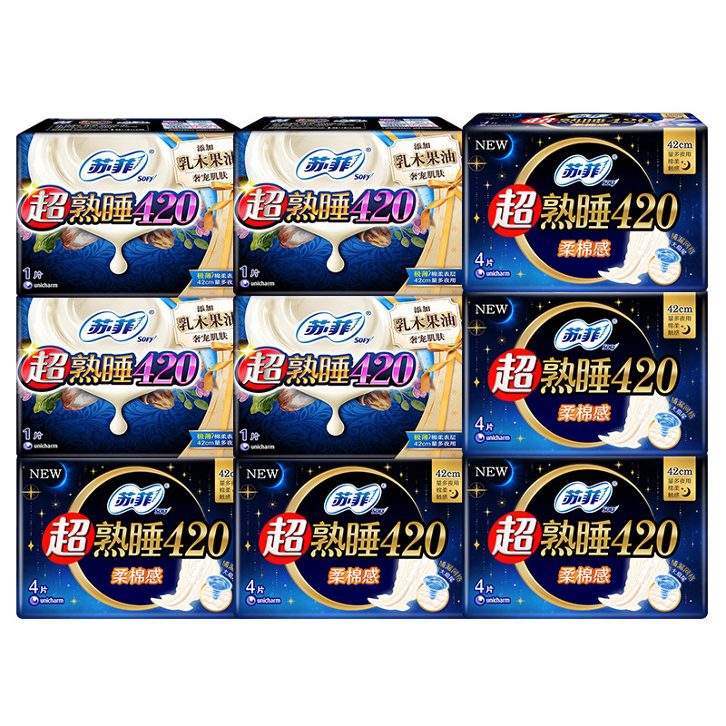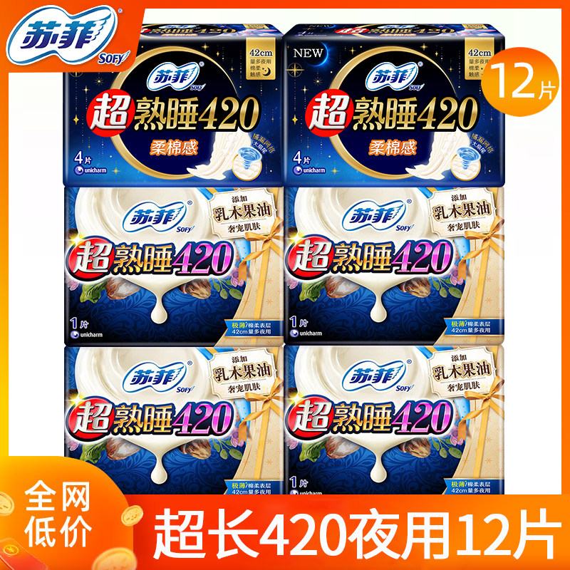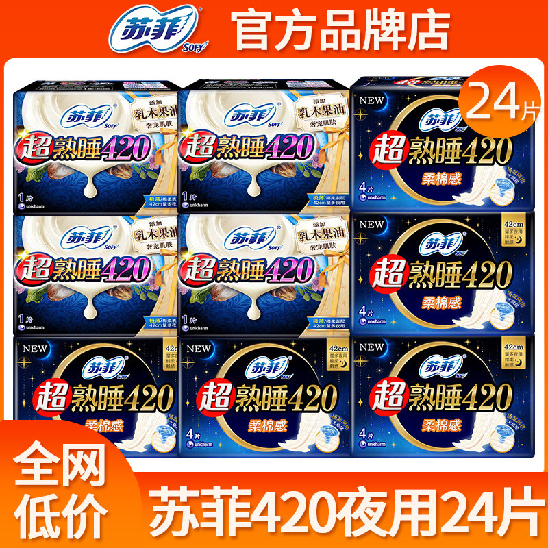 📚 苏菲卫生巾女超熟睡超长夜用420mm姨妈巾组合装整箱批发官方正品