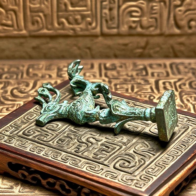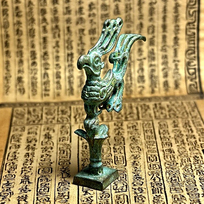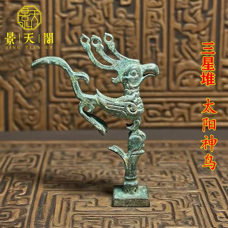 📚 绿锈包浆复古三星堆太阳神鸟古代人面具古玩稀有仿青铜摆件 装饰