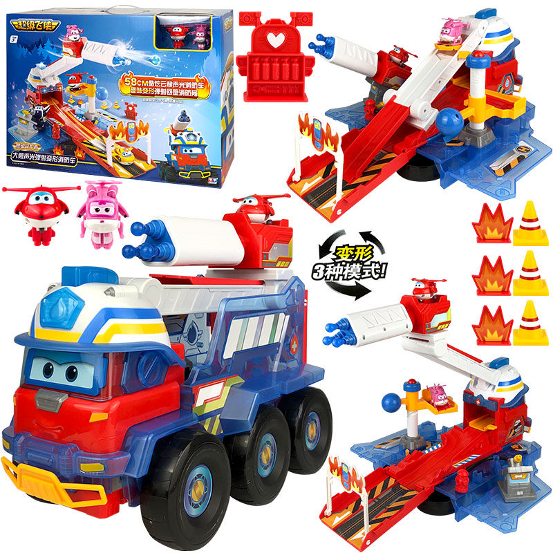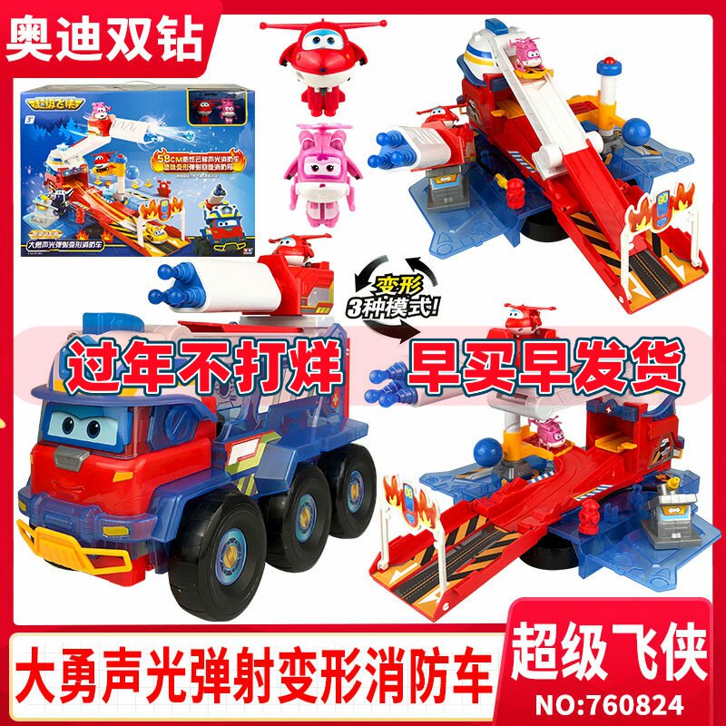 📚 超级飞侠大勇声光弹射变形消防车总部基地机器人金刚儿童玩具套装