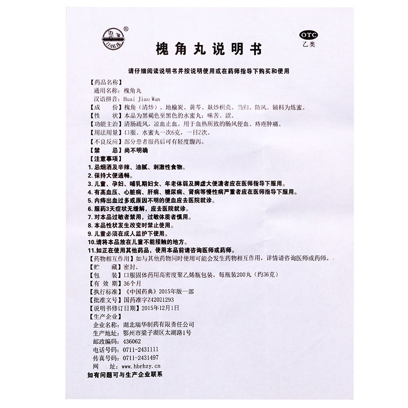 📚 包邮】瑞华梁湖槐角丸200丸 清肠疏风凉血止血用于肠风便血