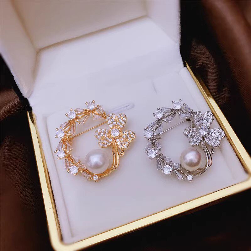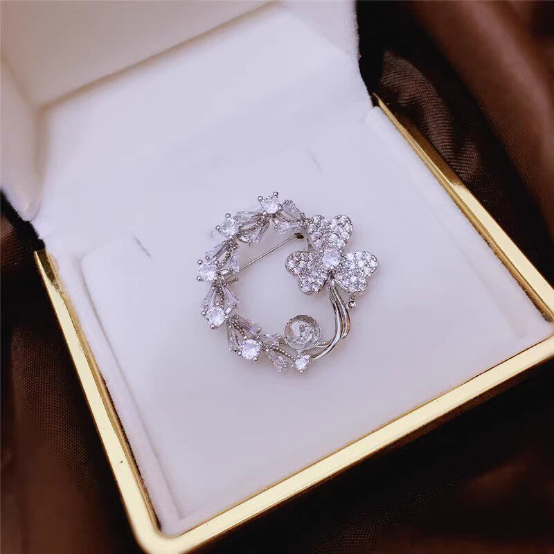 📚 DIY手工配件 微镶精工领结款胸针半成品花朵胸饰空托珍珠胸花配饰