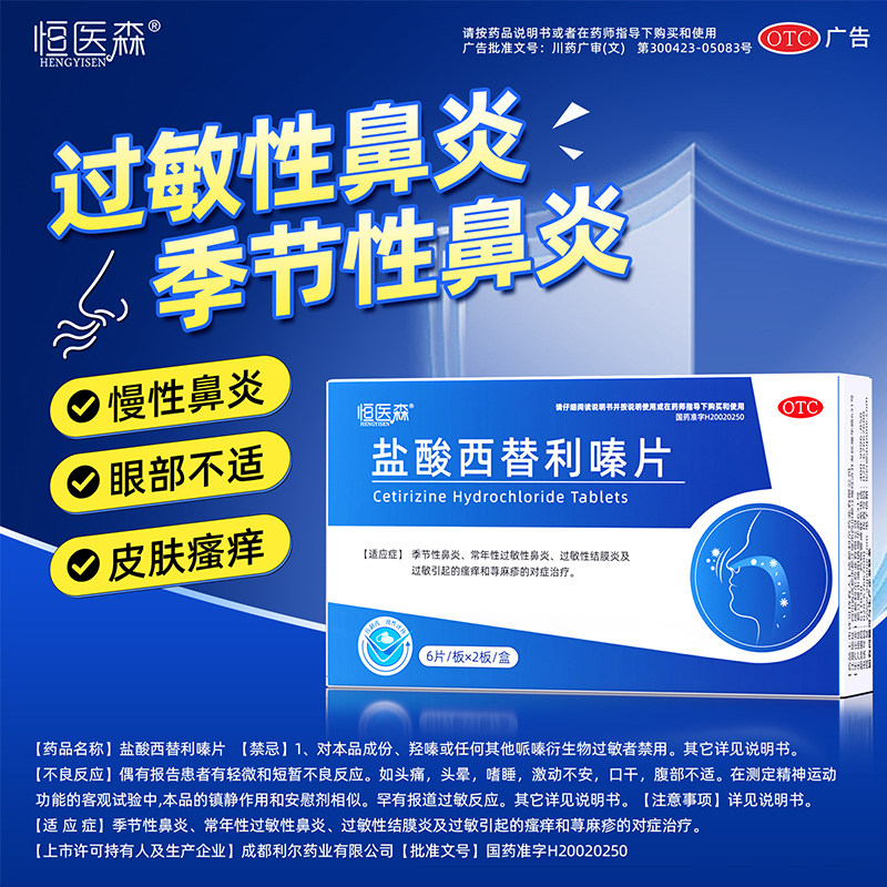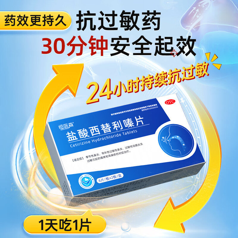 📚 恒医森盐酸西替利嗪片专用抗过敏药正品皮肤瘙痒过敏性鼻炎荨麻疹
