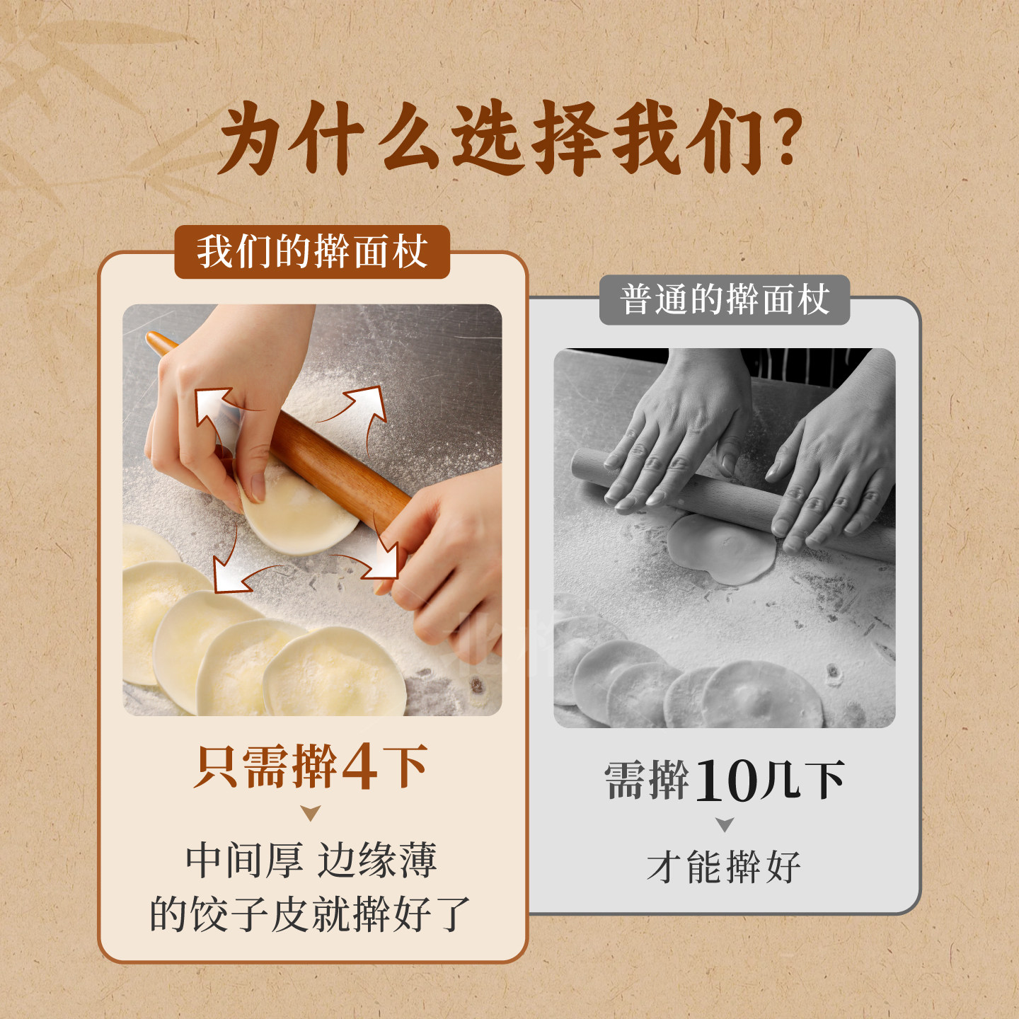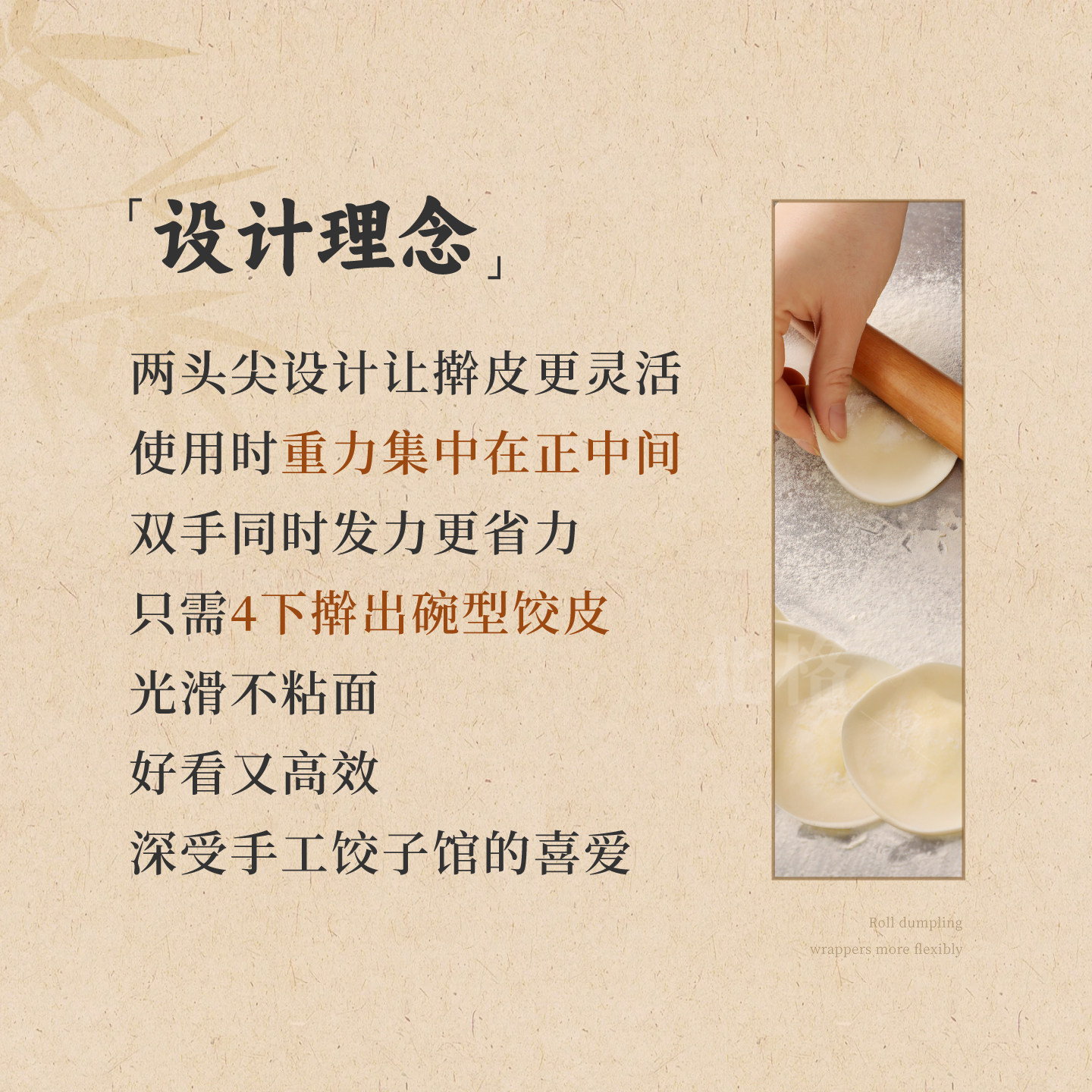 📚 擀面杖饺子皮专用实心梨木家用商用食品级饺子擀皮神器两尖头面棍
