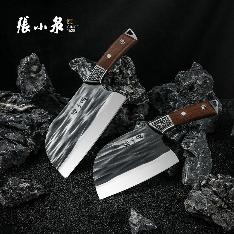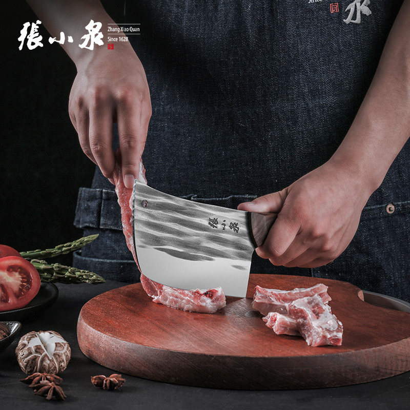 📚 张小泉墨染古韵切片刀斩骨砍菜刀家用圆头切菜杀鱼刀锻打锤纹刀具