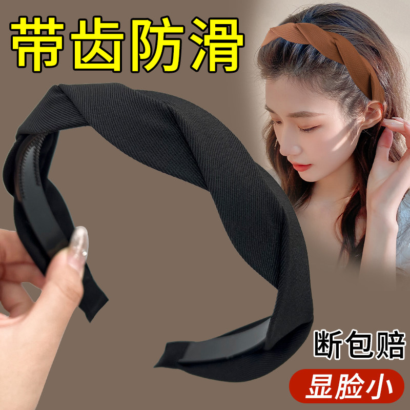 📚 高颅顶发卡发箍女2025新款高端黑色发夹带齿防滑头箍女士宽边头饰