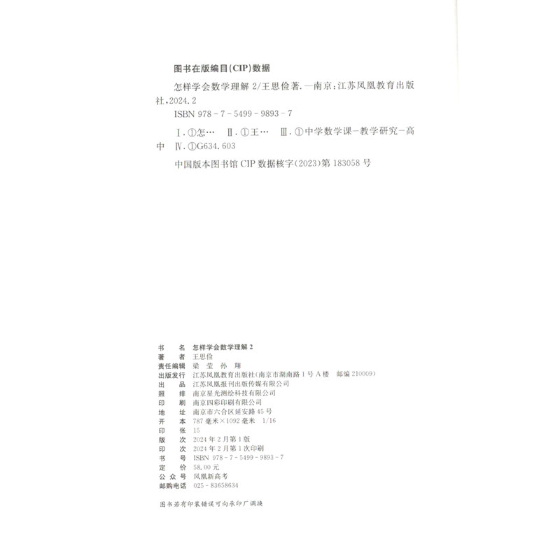 📚 怎样学会数学理解 2 王思俭 理解数学培养学生的数学理解能力 中学教材江苏凤凰教育出版社凤凰新华书店旗舰店