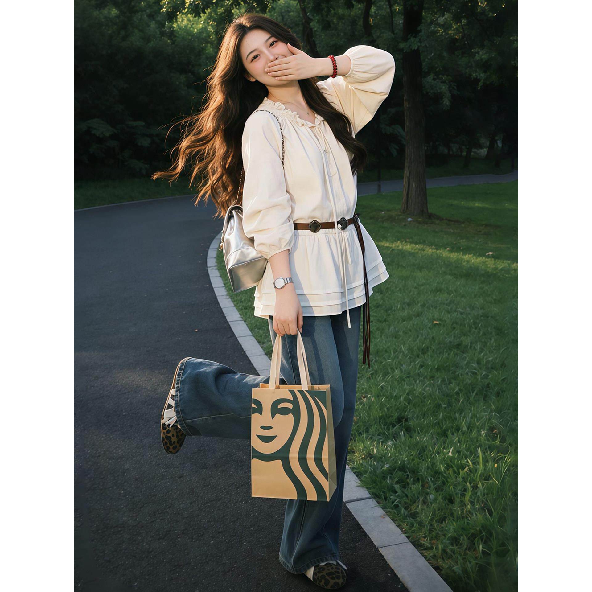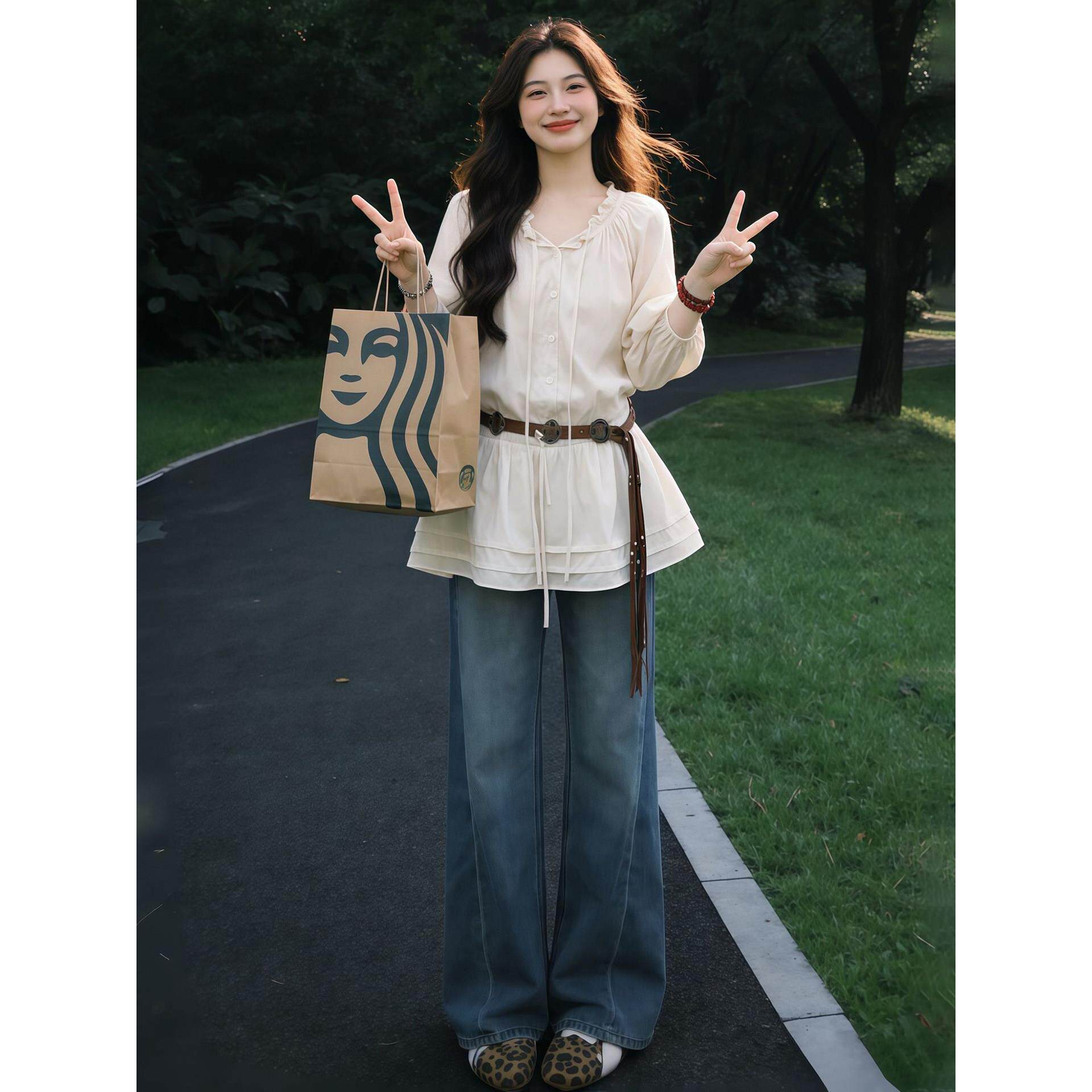 38¥ CZ356 vNOm58MDtrN¥ https://m.tb.cn/h.is6g4pm 杏色木耳边长袖衬衫配腰带女2026春季独特超好看时尚减龄收腰上衣 --------------------- 【原售价】85.8元 【现售价】85.8元。