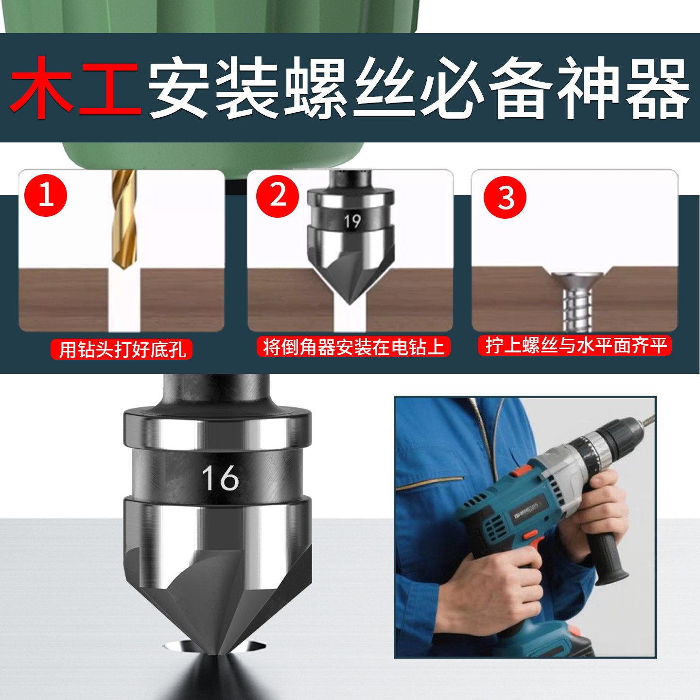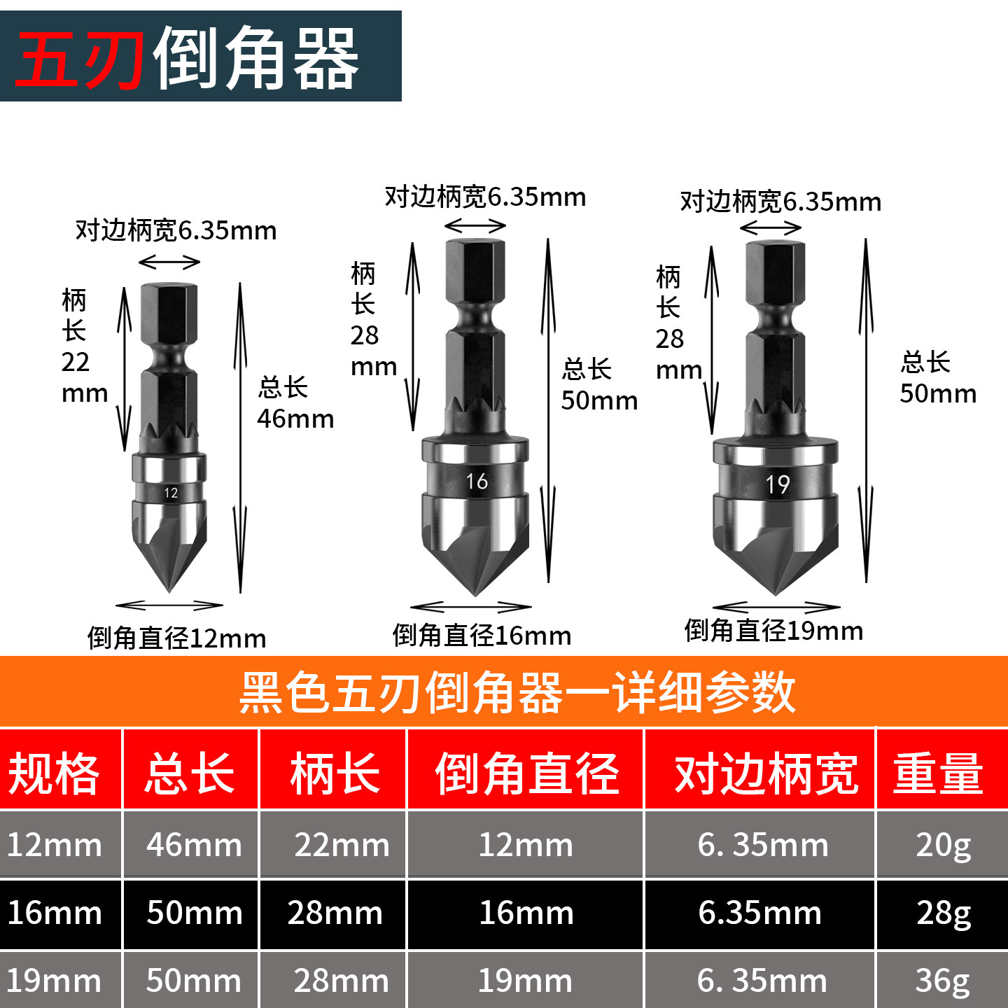 📚 五刃倒角刀倒角器90度六角柄扩孔钻锥度螺丝沉孔刀去毛刺锪钻