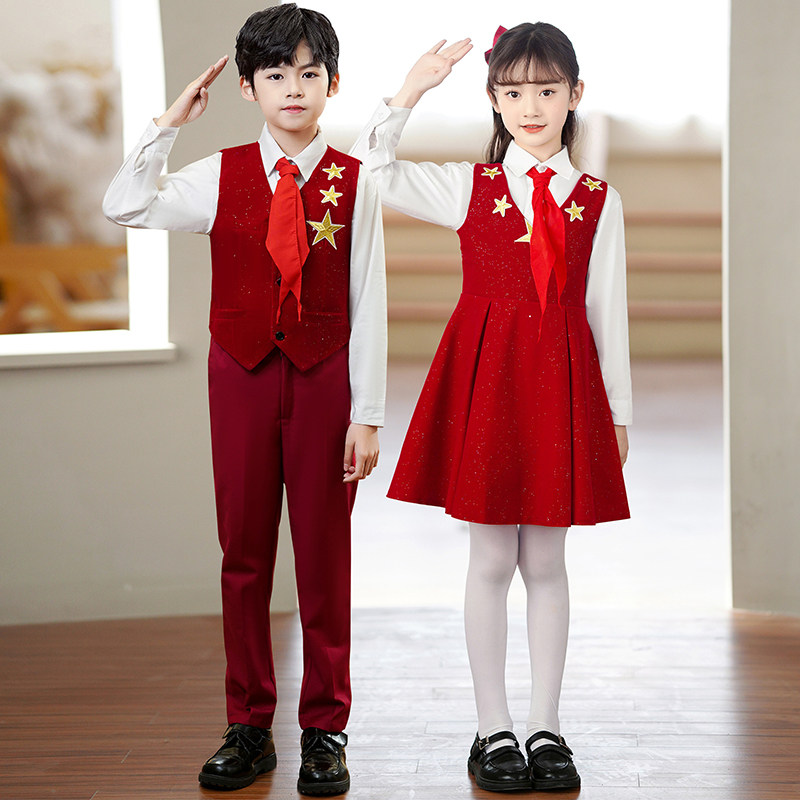 📚 元旦儿童大合唱团演出服红歌小学生爱国演讲比赛朗诵表演服装礼服