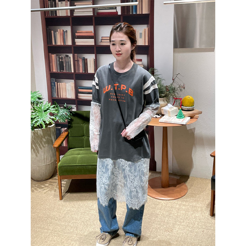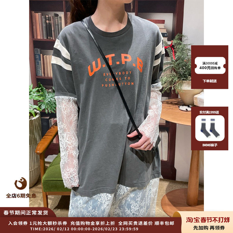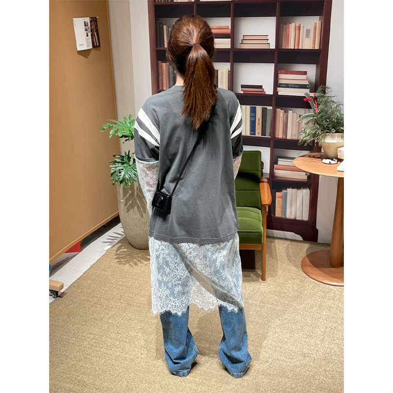 📚 【现货】设计师品牌 PUSHBUTTON 26RS叠层蕾丝袖T恤长裙