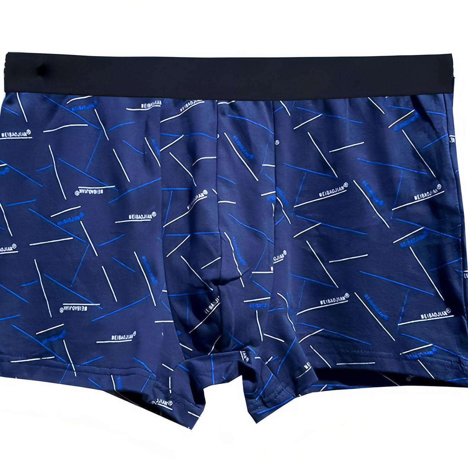 📚 5条加大码宽松男士纯棉平角中腰四角内裤透气肥佬短裤头青年印花