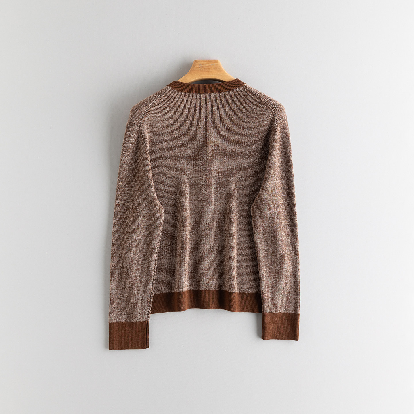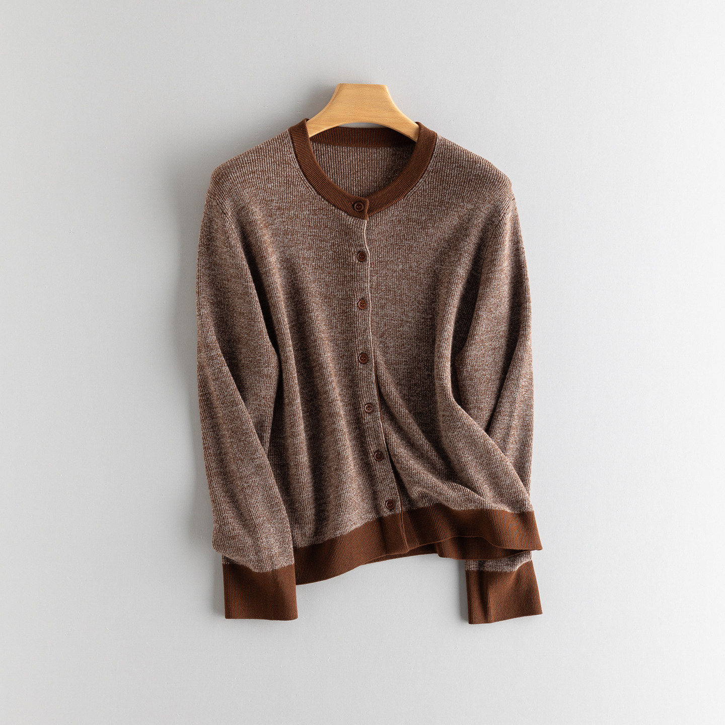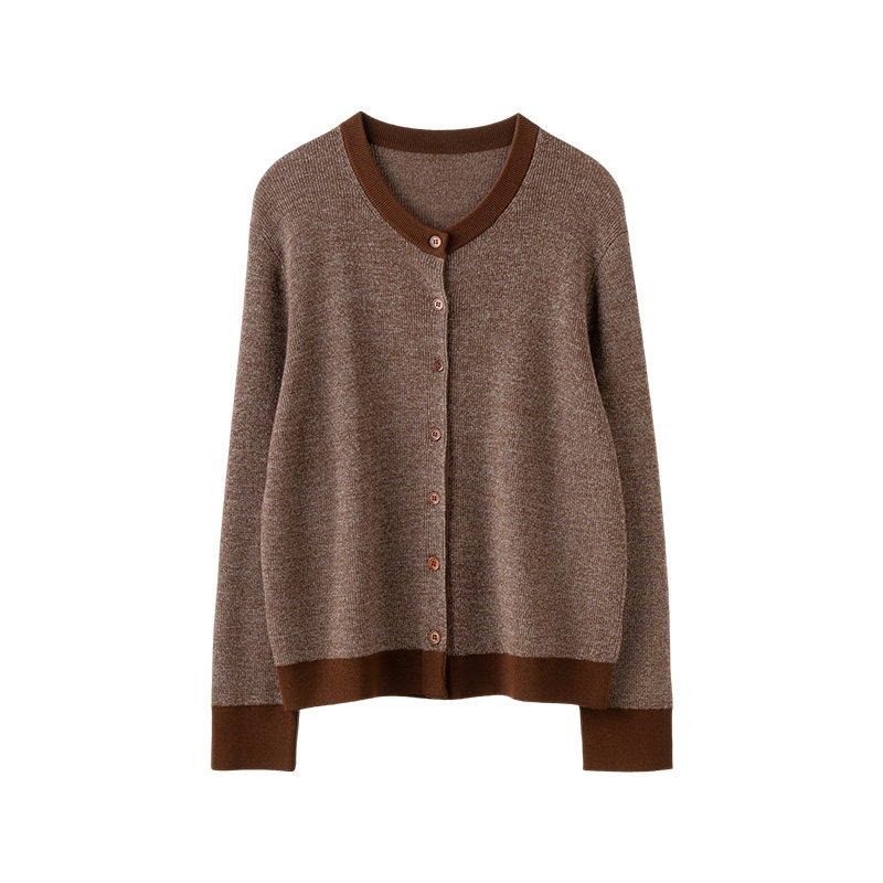 📚 英伦高级感复古时尚开衫女100%羊毛精纺扬子纱拼色加厚针织衫外套