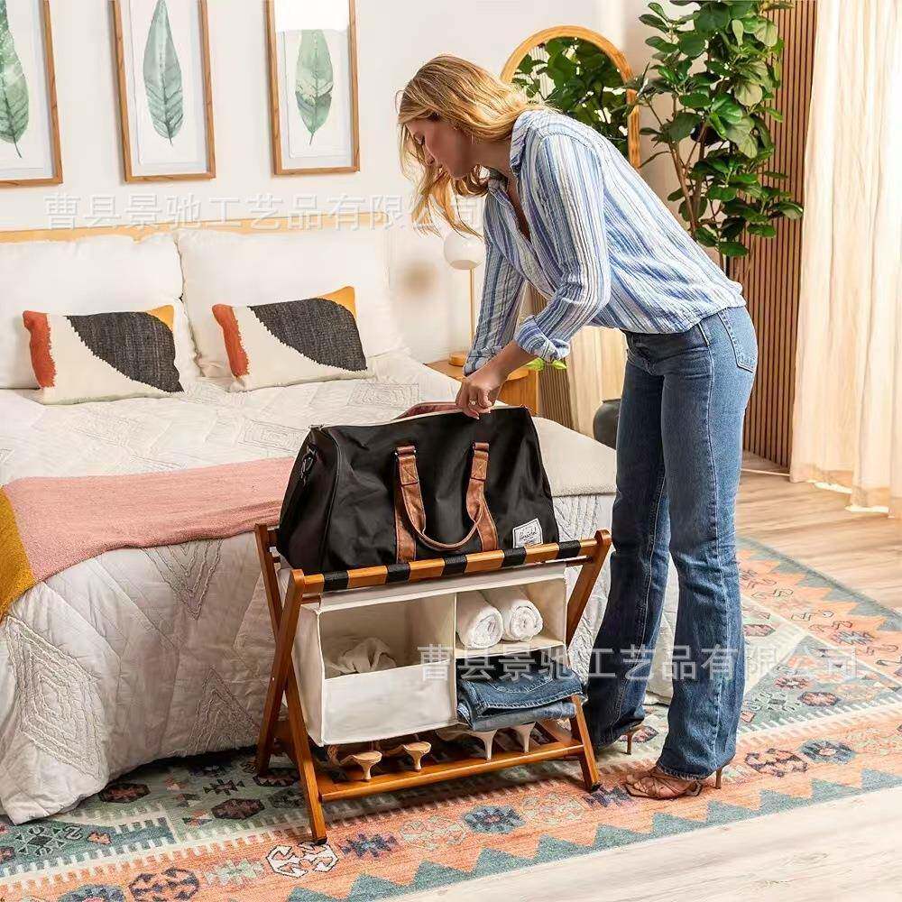 📚 木质行李收纳架酒jc-907地店箱卧室双层可折叠李架落式手提箱支行
