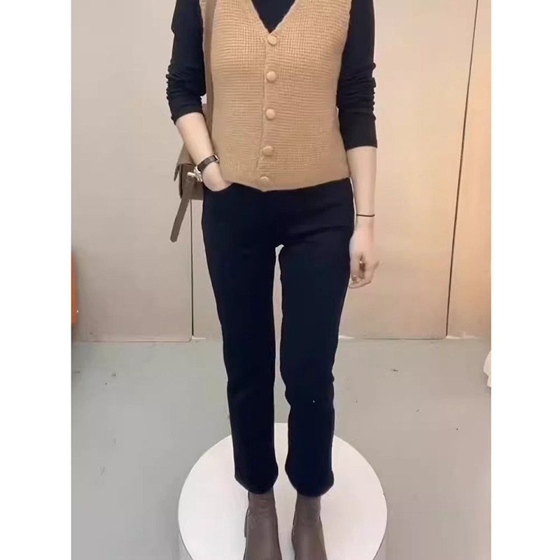 📚 黑色烟管牛仔裤女七分八分裤子秋冬加绒加厚高腰145小个子直筒裤8