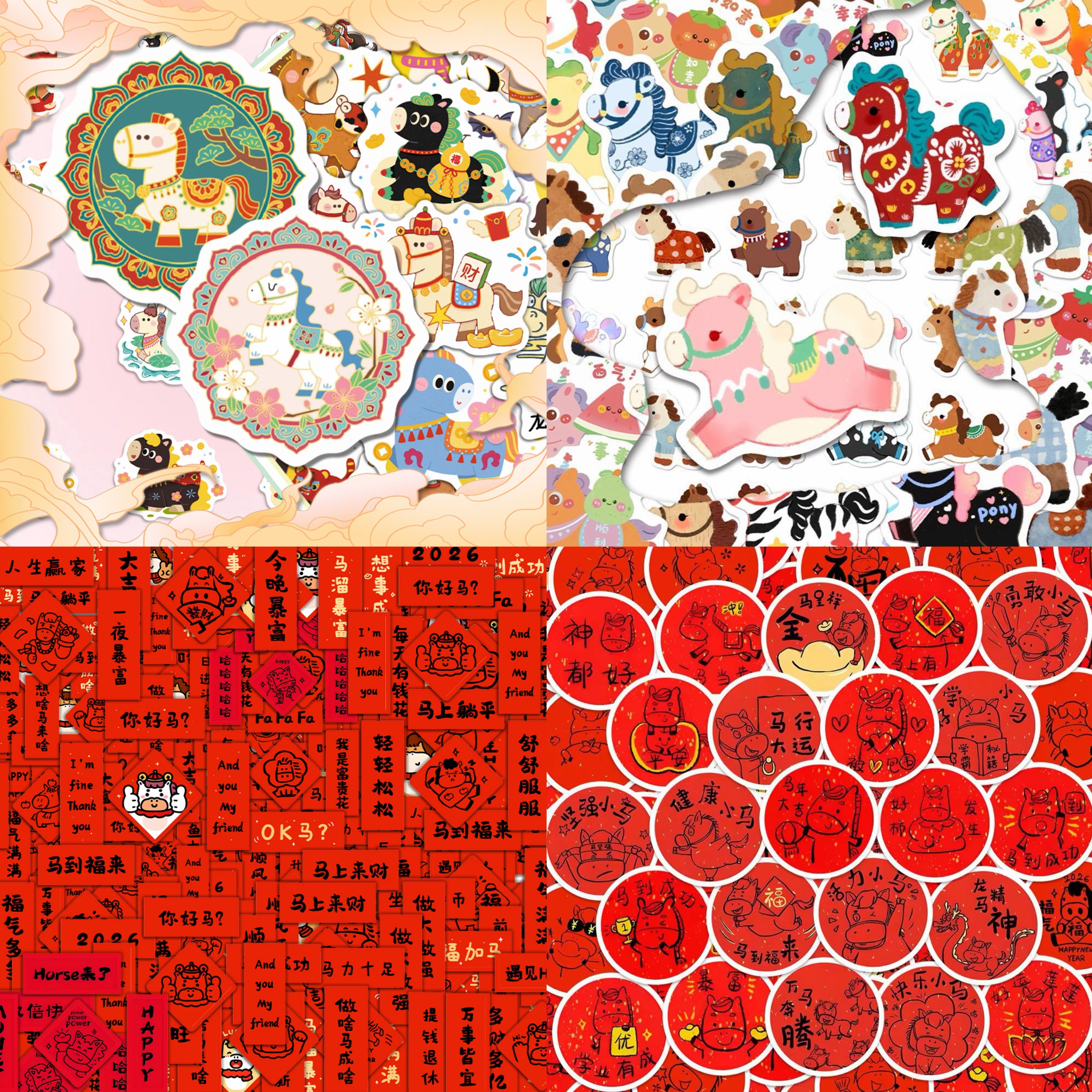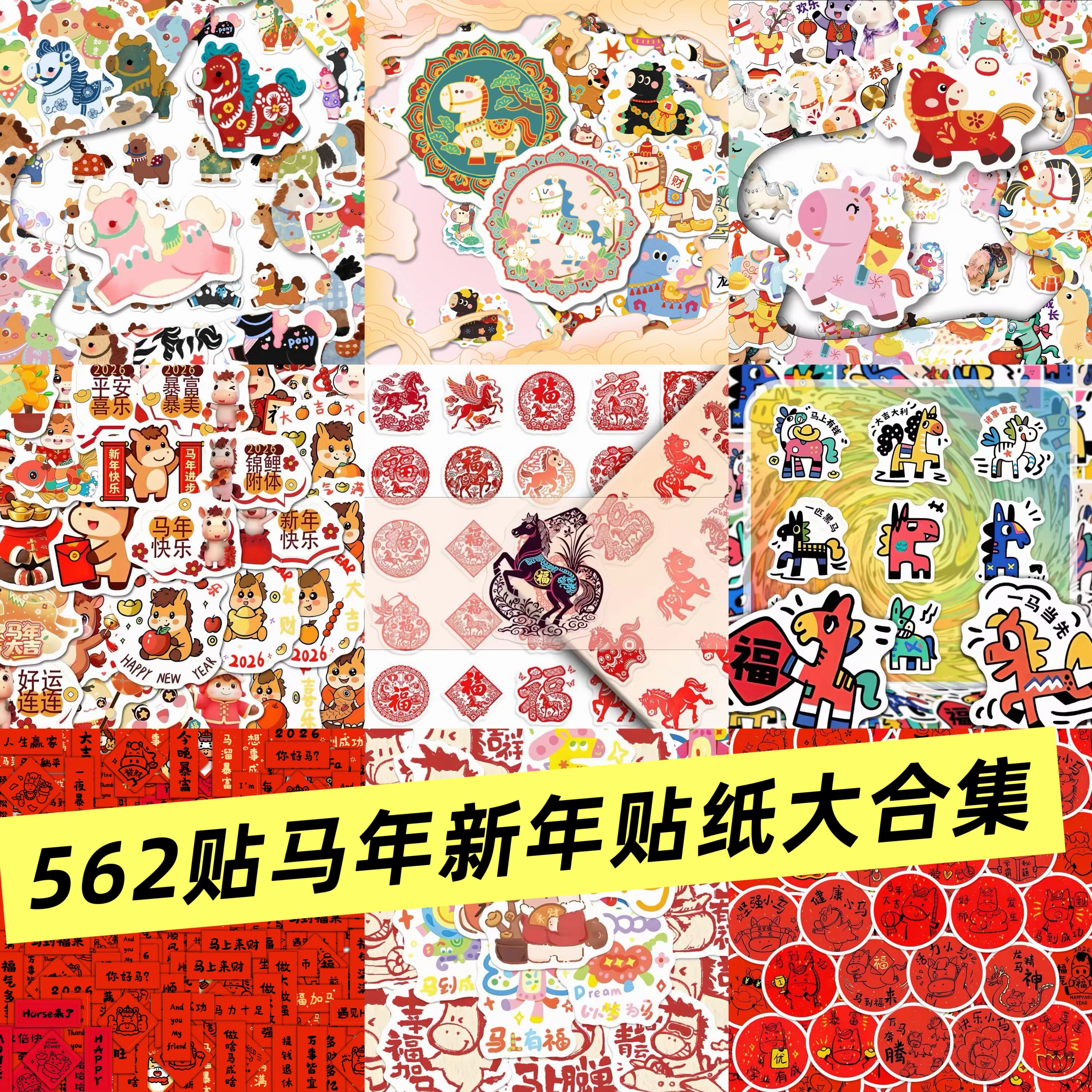 📚 马年贴纸福到了儿童奖励女孩喜庆节日氛围彩绘缤纷卡通涂鸦祝福