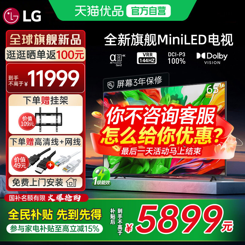39¥ CZ005 KIDwUnGRl4r¥ https://m.tb.cn/h.7C3kEKu 【天喵自营】LG电视65QNED85ACA 65英寸MiniLED官方正品144Hz高刷 --------------------- 【原售价】11,999元 【现售价】11,999元。