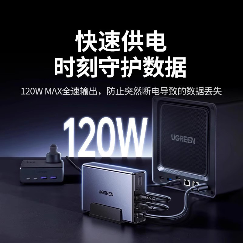 📚 绿联NAS私有云UPS不间断电源 12000毫安120W家庭存储断电保护器 US3000自动识别开关机延长供电硬盘保护电源