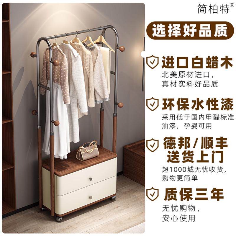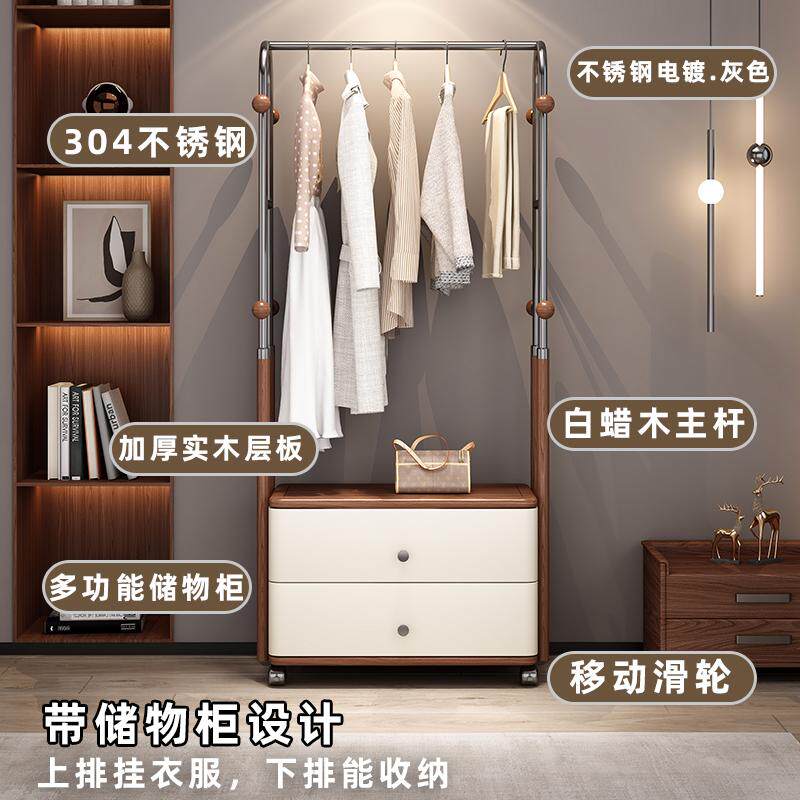 📚 意式轻奢创意实木衣帽架简约抽屉白蜡木卧室客厅挂衣架落地不锈钢
