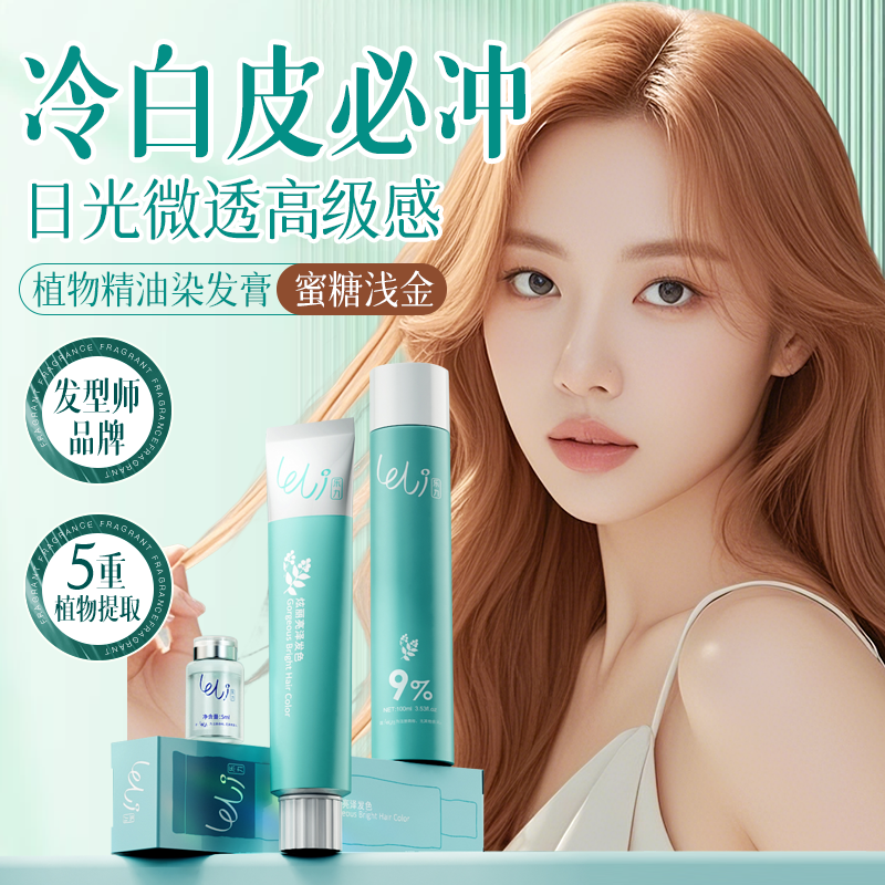 📚 乐力蜜糖浅金色染发剂膏泡泡橘棕亚麻色十大品牌植物天然正品纯女