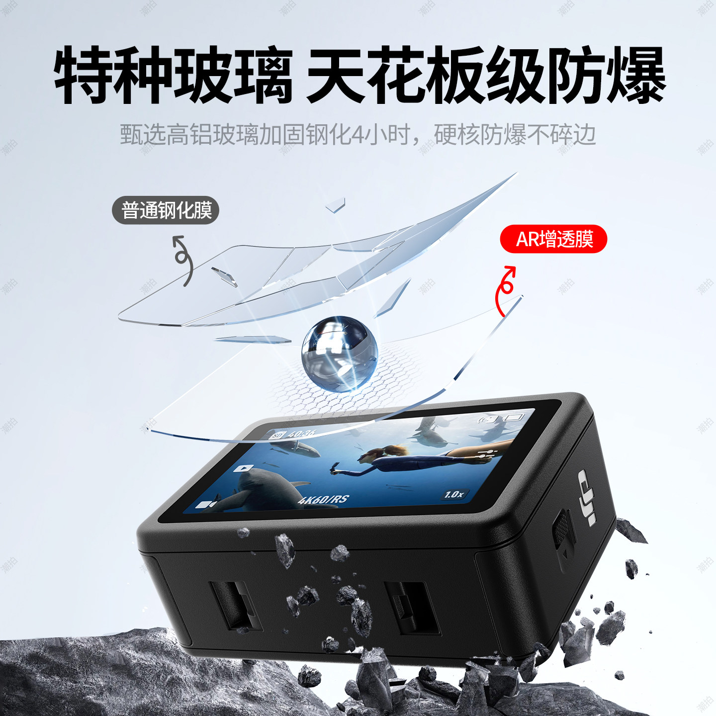 📚 适用大疆Action6钢化膜Action5pro运动相机膜Action4新款Osmo前后屏Action6高清AR防反光Dji全屏幕保护贴