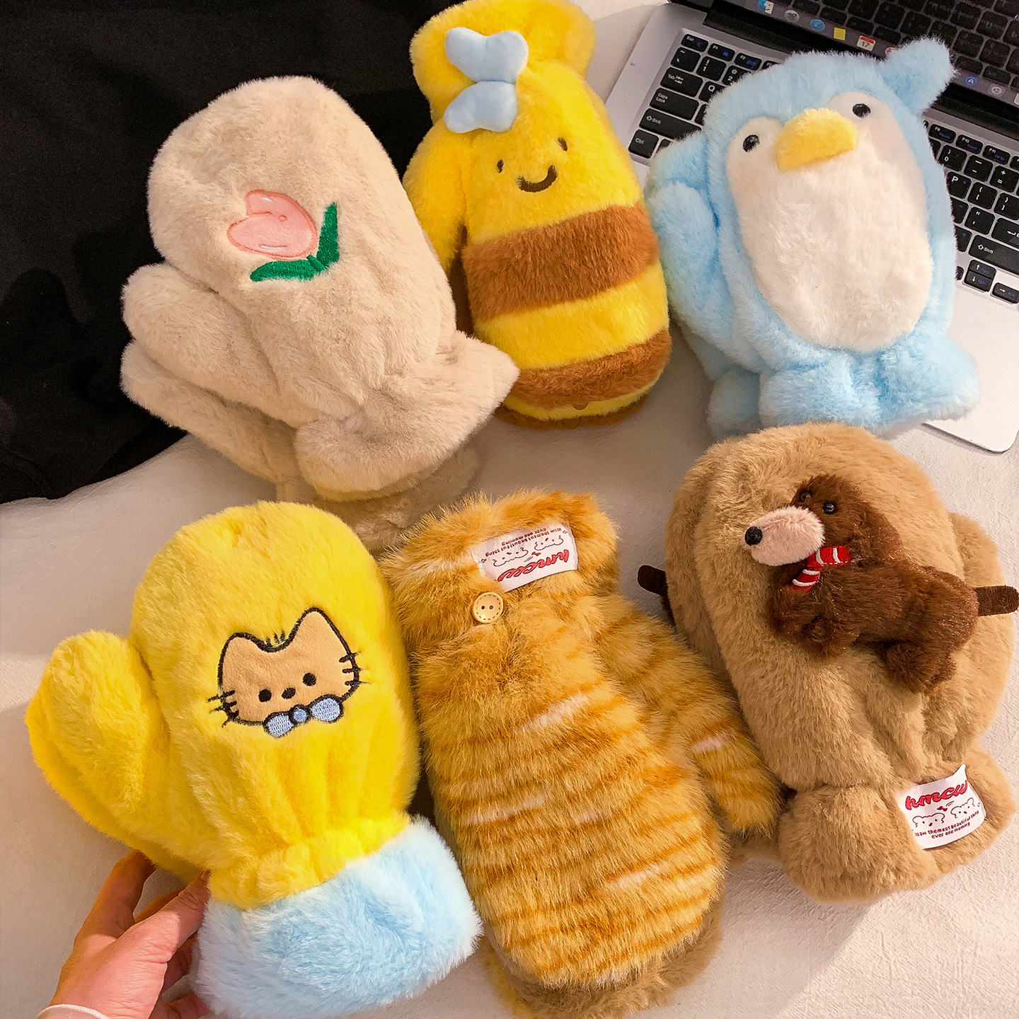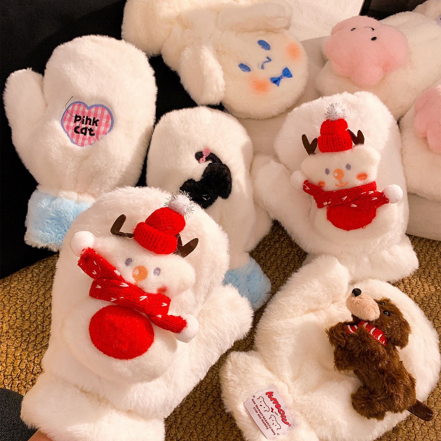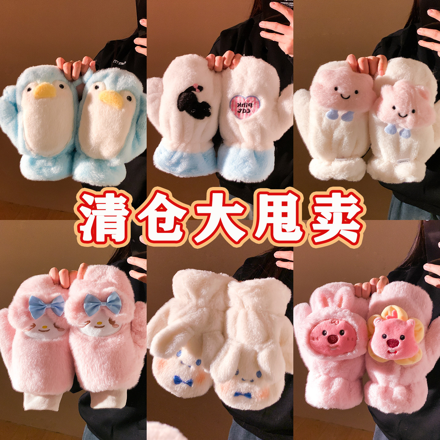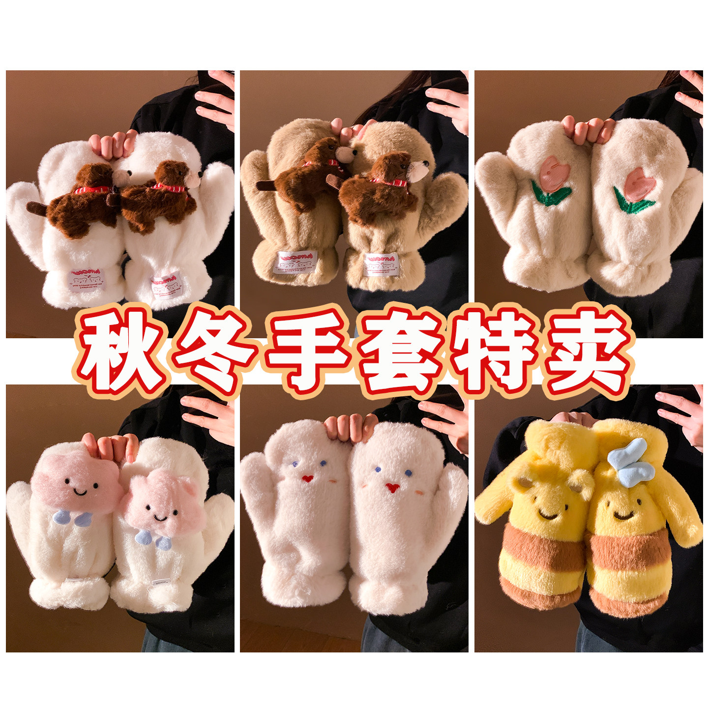 📚 宝茵菲年底清仓5折~可爱连指毛绒手套女冬季保暖防寒全包骑车挂脖
