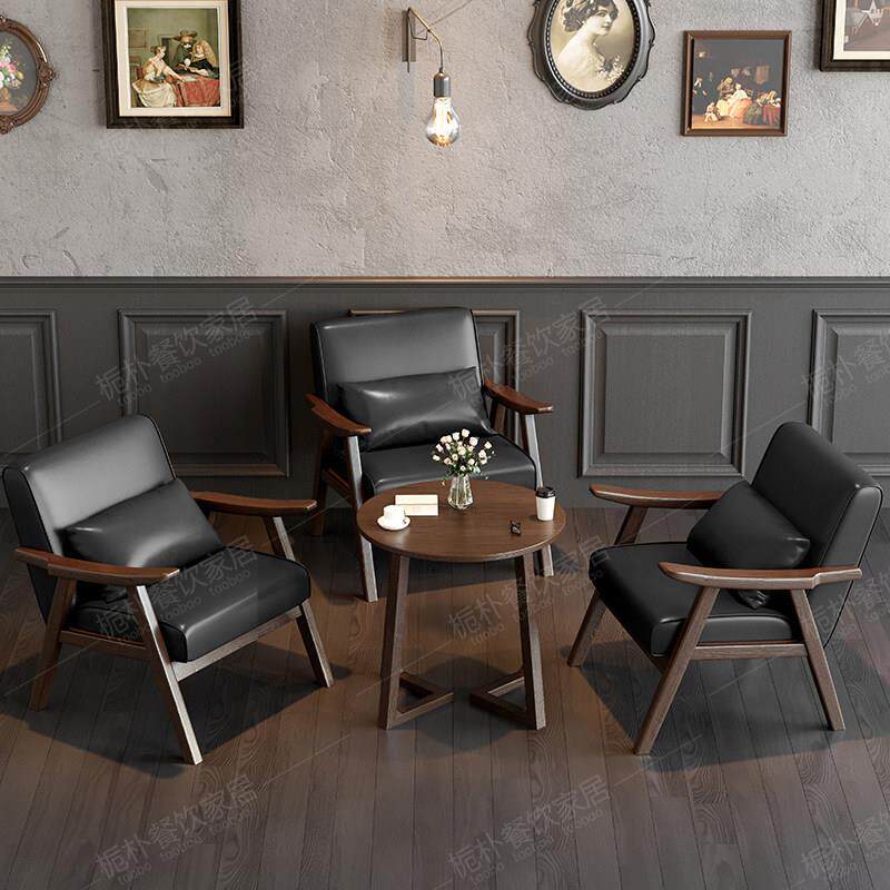 📚 覆古咖啡厅奶茶店桌椅组合黑色酒吧沙发卡座酒店休闲 实木洽谈接