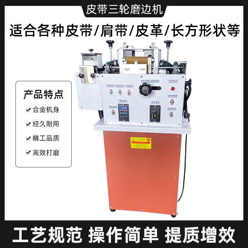 📚 皮带磨边机自带吸尘三轮双边打磨机皮具打粗机抛光机皮革加工设备