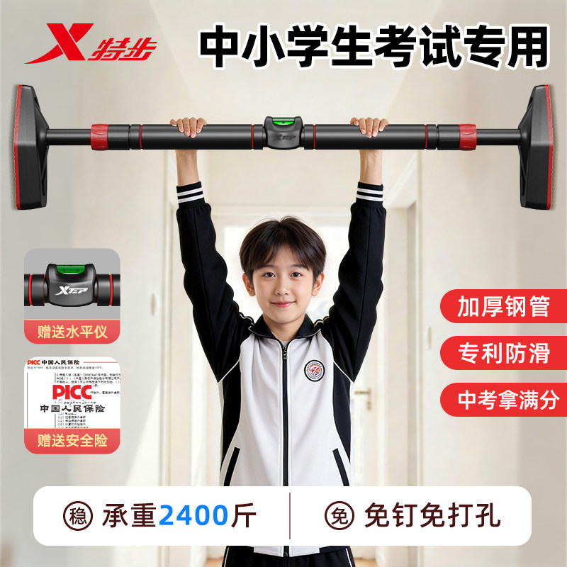 📚 特步单杠室内家用引体向上杆免打孔家庭健身器材儿童吊环拉伸门框