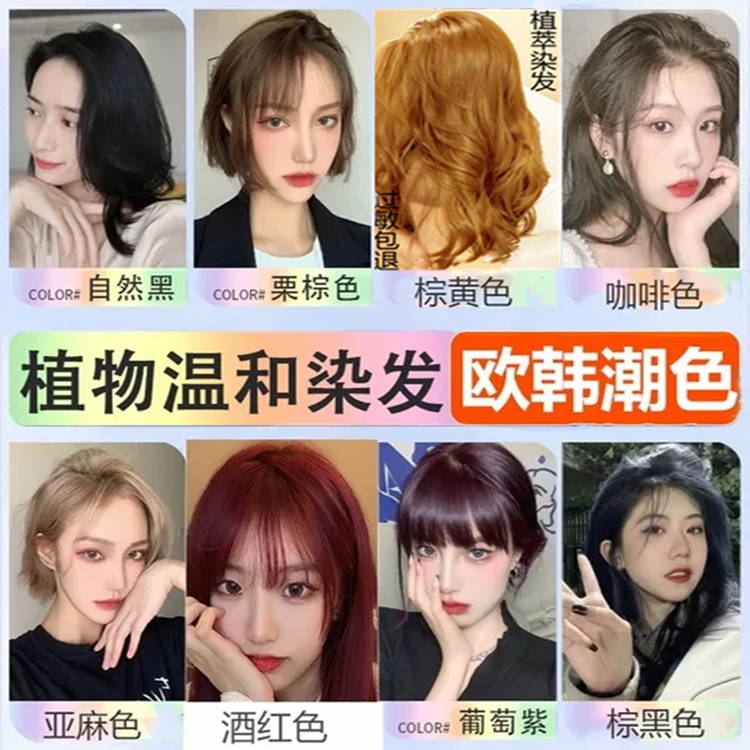 📚 流行色染发剂纯植物不刺激染发膏酒红色女黑紫栗棕黄自己在家染发