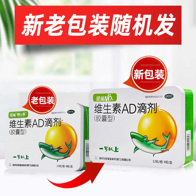 📚 星鲨维生素AD滴剂(胶囊型)1岁以上48粒儿童维生素AD佝偻症小儿