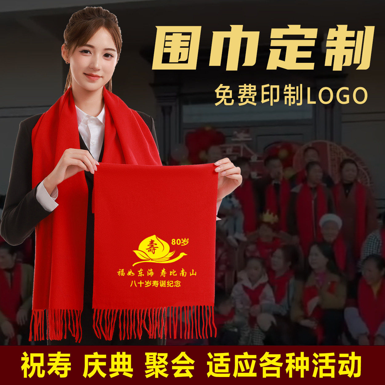 📚 祝寿红围巾定制老人生日寿宴活动寿星拜寿大寿冬季红色中国红