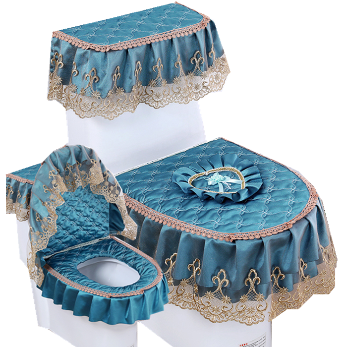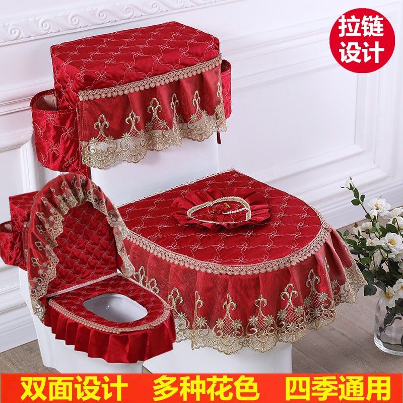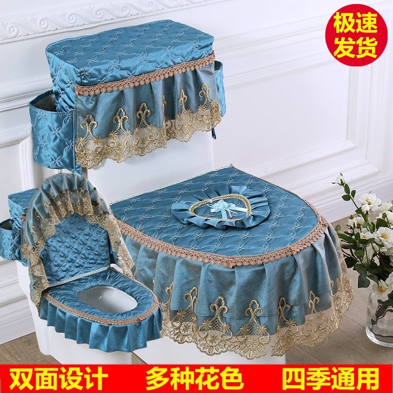 📚 马桶垫家用蕾丝布艺拉链款通用坐便垫套防尘保暖座便器垫水箱盖布