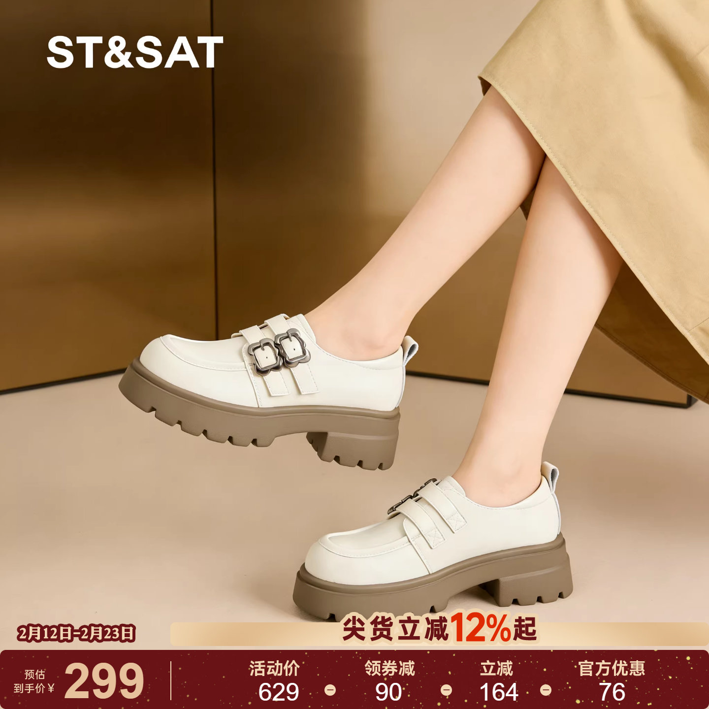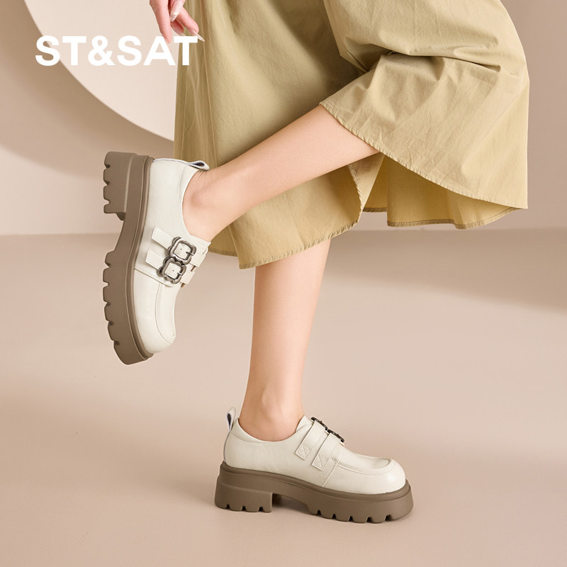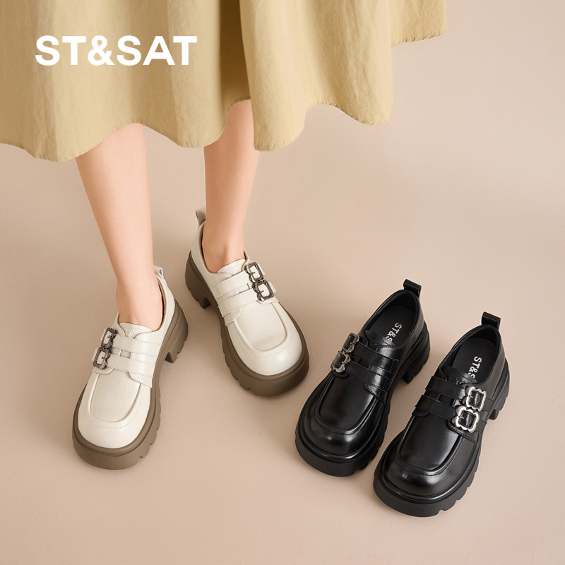 📚 星期六厚底乐福鞋女鞋春季新款英伦风小皮鞋女士百搭增高粗跟单鞋