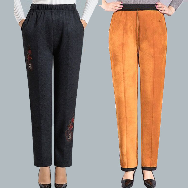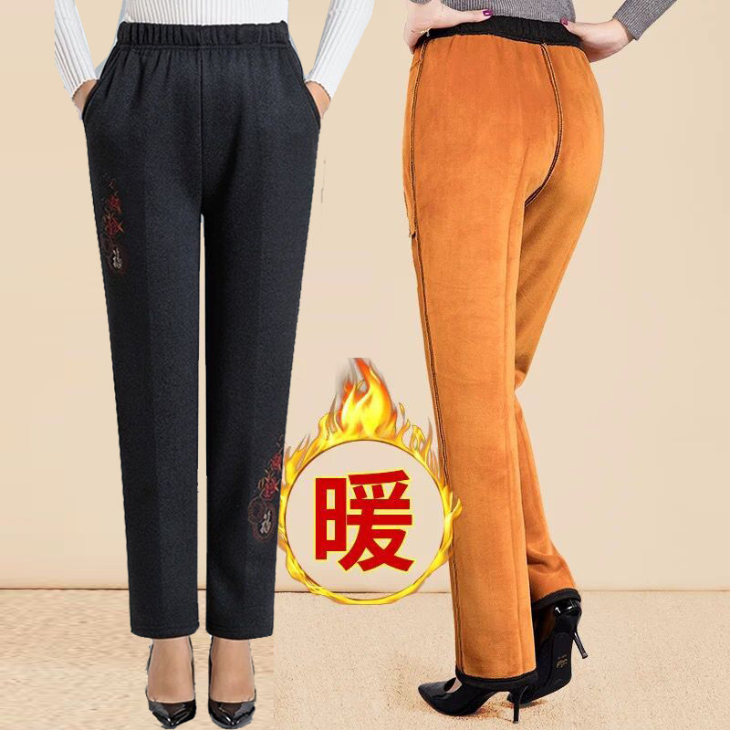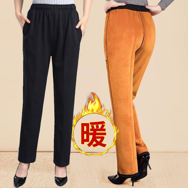 📚 加绒加厚秋冬季直筒裤女长裤弹力高腰中年妈妈裤子大码保暖女裤
