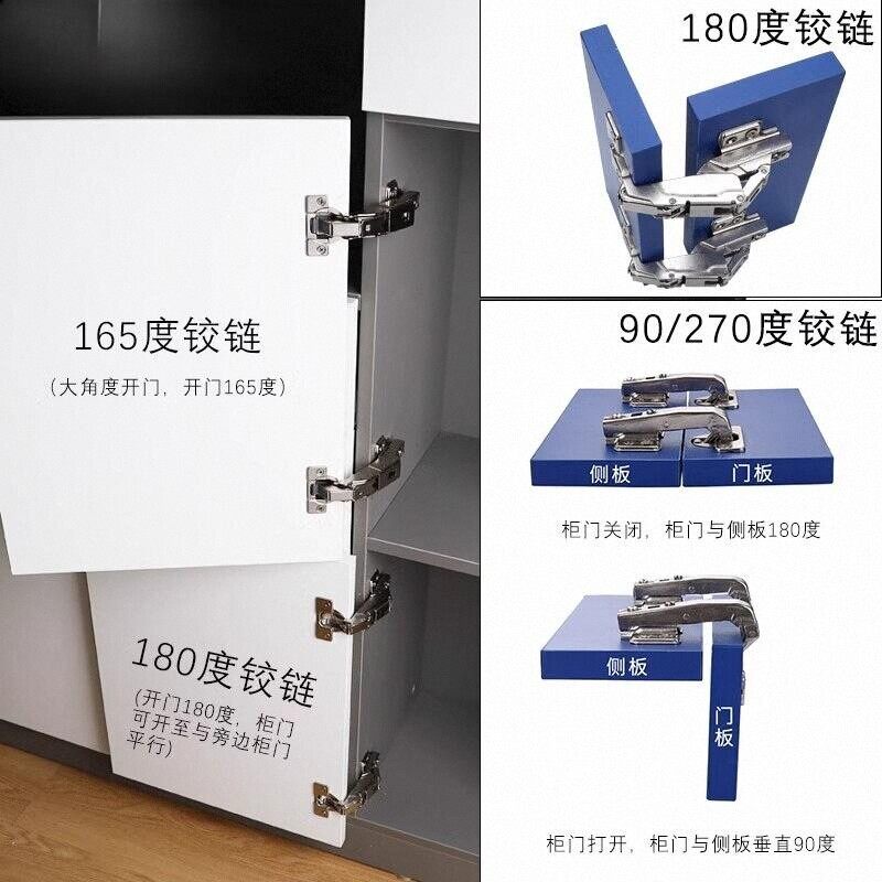 📚 90度270度180度平开门铰链一字165度大角度转角柜门特殊合页门铰