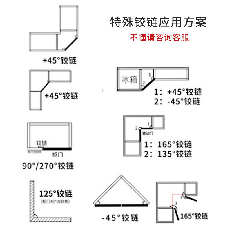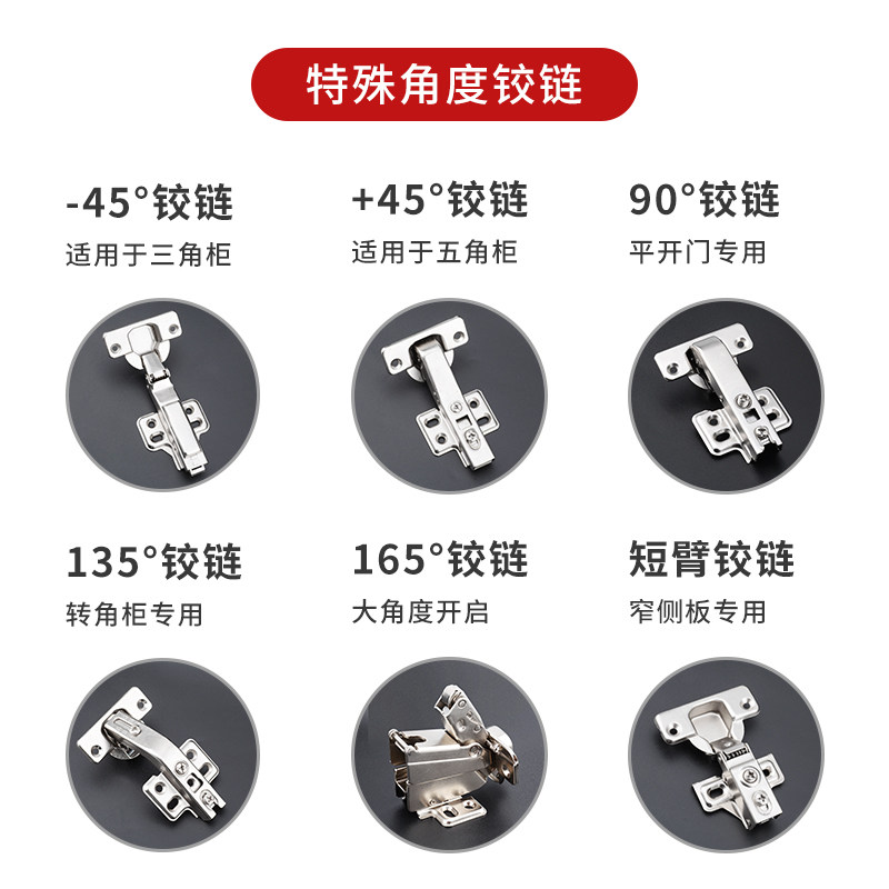 📚 165度大角度铰链270 斜角柜短臂门铰45负30度转角柜门135特殊合页