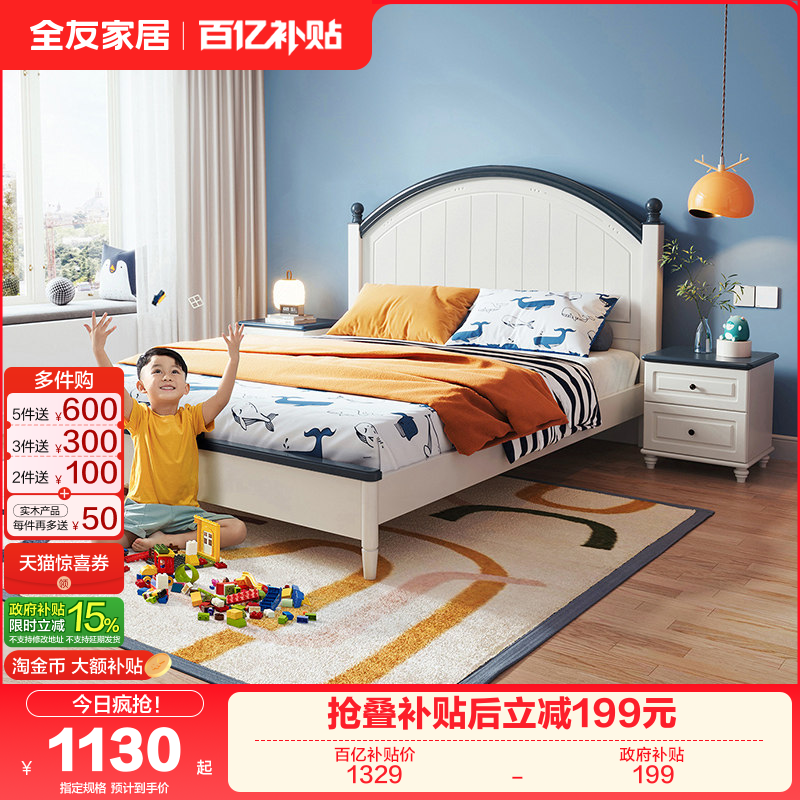 📚 全友家居现代简约儿童床实木脚1.5米青少年床1米2男孩卧室单人床