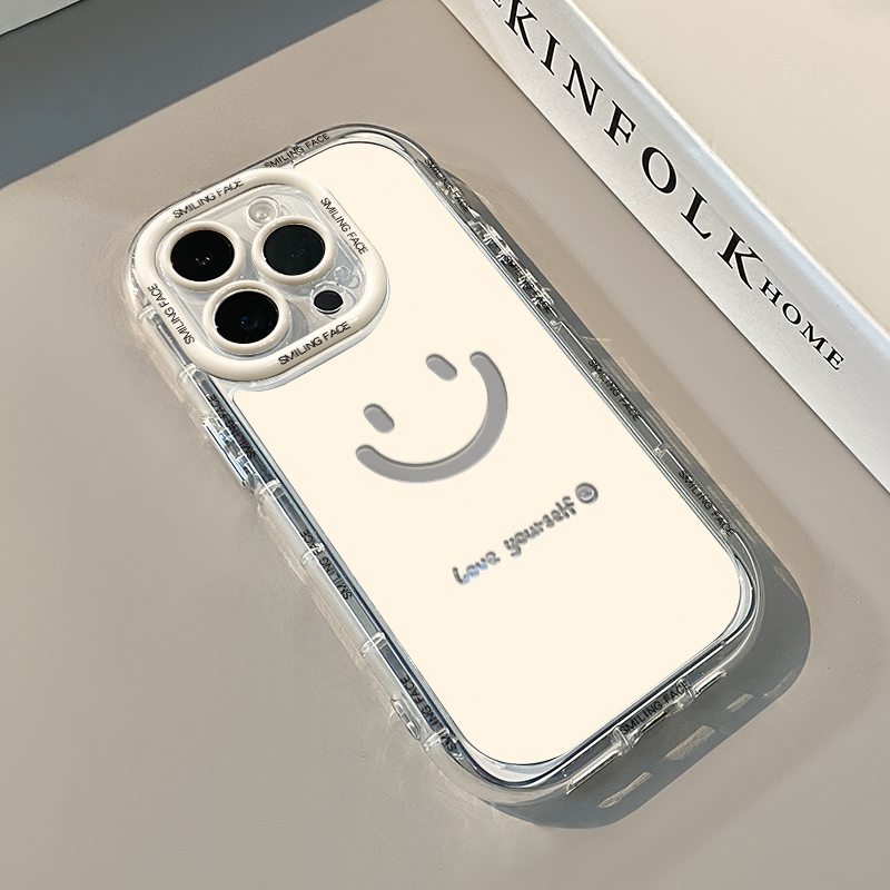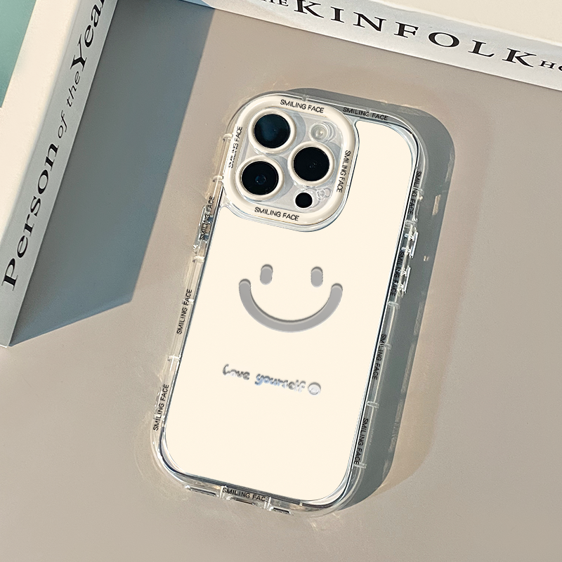 📚 ins简约创意可爱笑脸镜面适用苹果17promax奶油壳华为oppo新iPhone16/15/13promax手机壳红米小米13pro