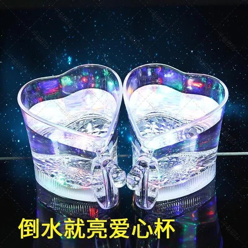 📚 发光杯子遇水会发光网红爱心水杯塑料LED喝水啤酒杯倒水七彩闪光