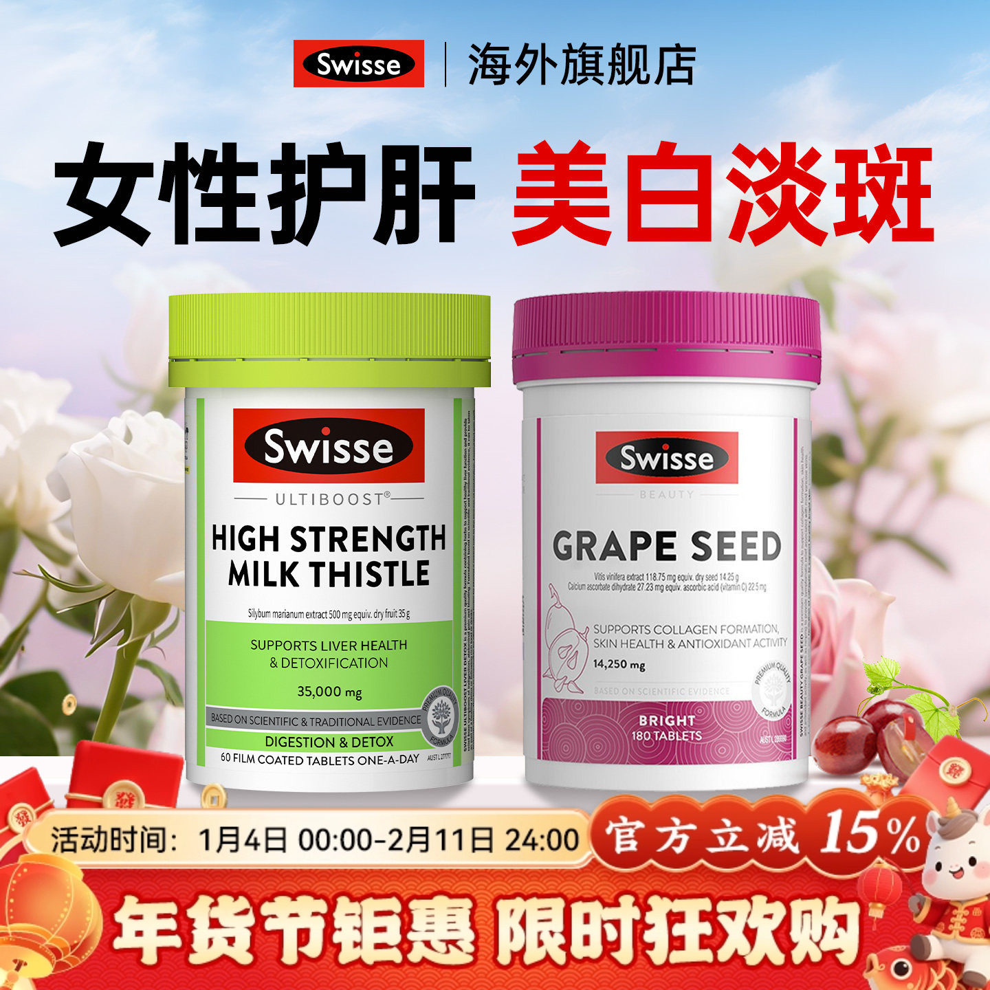 📚 swisse女性奶蓟草护肝片葡萄籽美白女士养肝熬夜swiss官方旗舰店