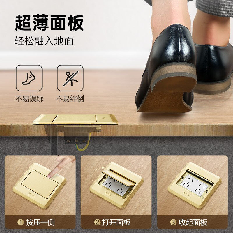 📚 公牛网络地插座隐形嵌入式不锈钢盖板超薄专防水纯平86型地面插座