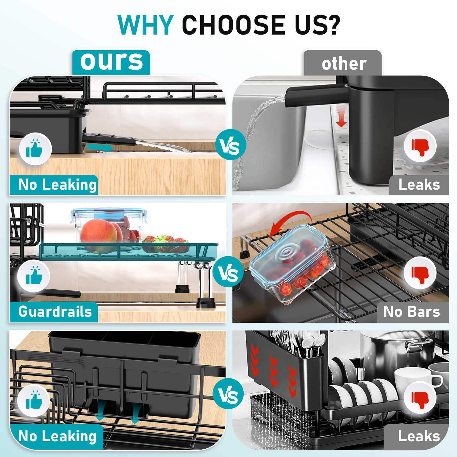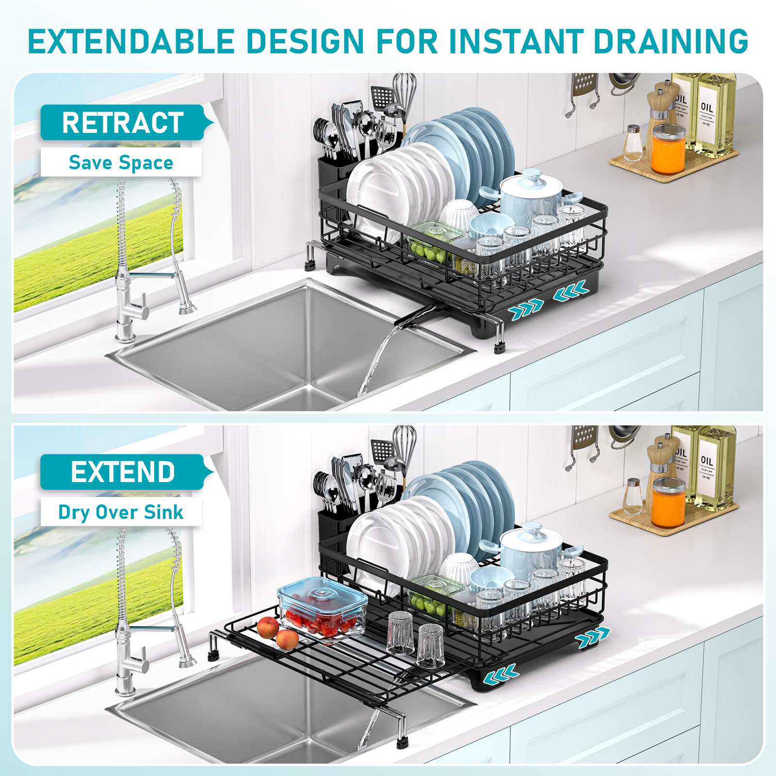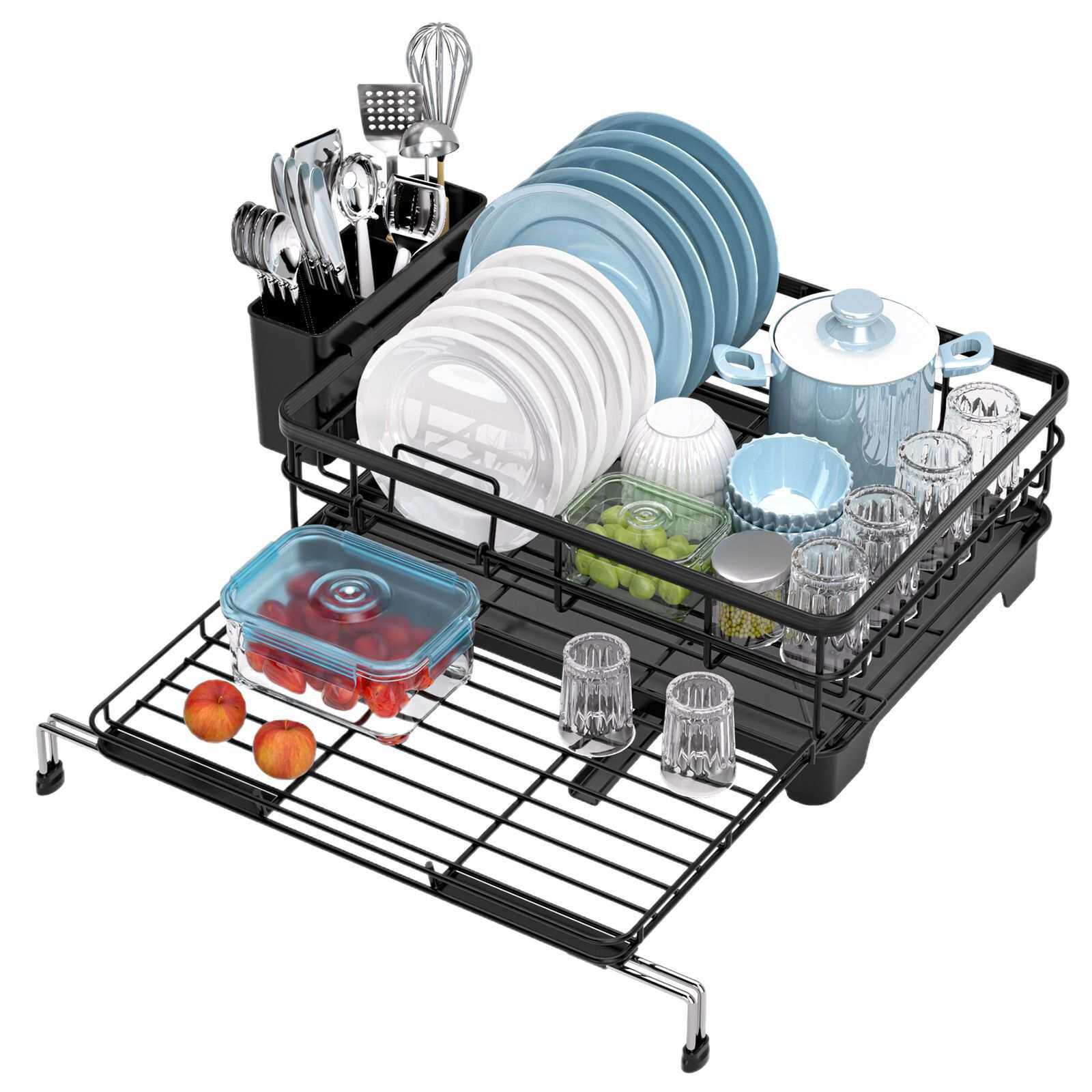 📚 厂家 厨房置物架可拉伸碗筷盘碟厨房沥水架防倾倒厨房收纳