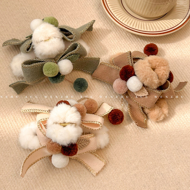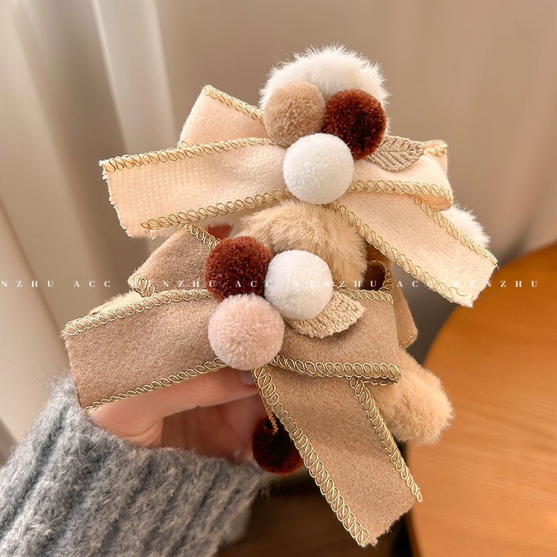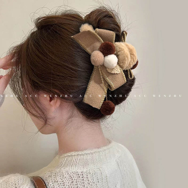 📚 毛绒球球抓夹女大号秋冬新款蝴蝶结鲨鱼夹后脑勺发夹盘发夹子头饰